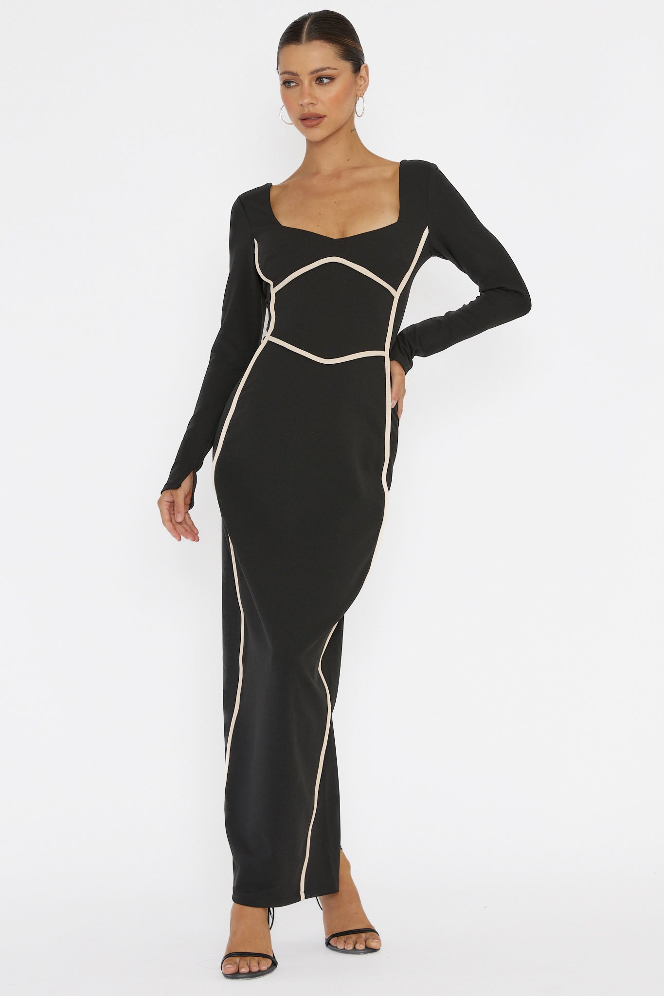Make jaws drop in our stunning Shenae midi dress. Featuring a chic piping trim and bodycon silhouette. Perfect for a glam girls' night out teamed with black mules and a saddle bag for a sophisticated look.