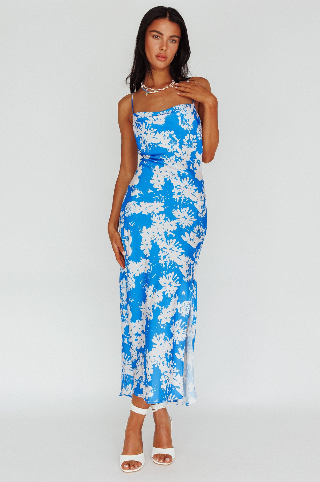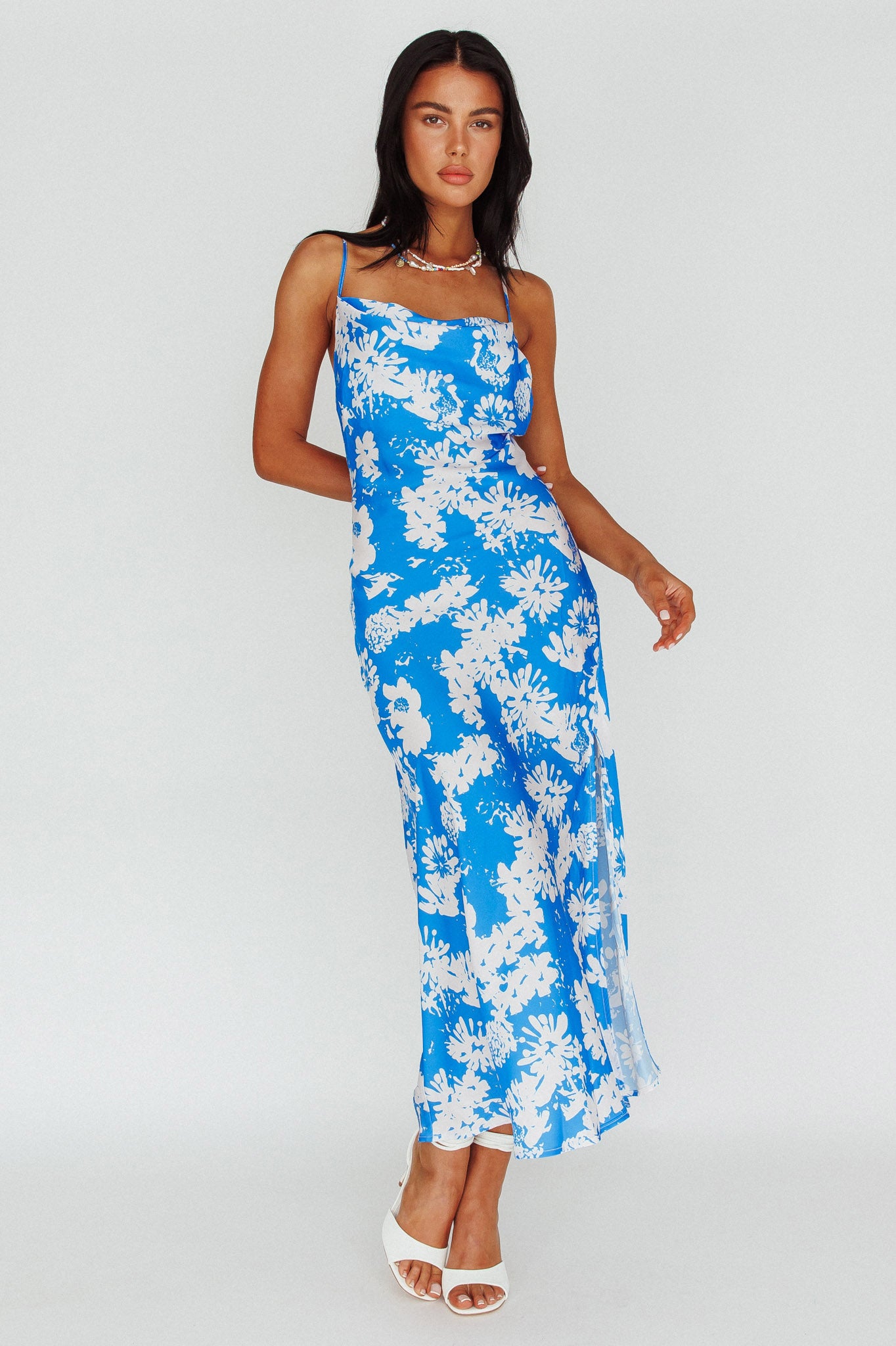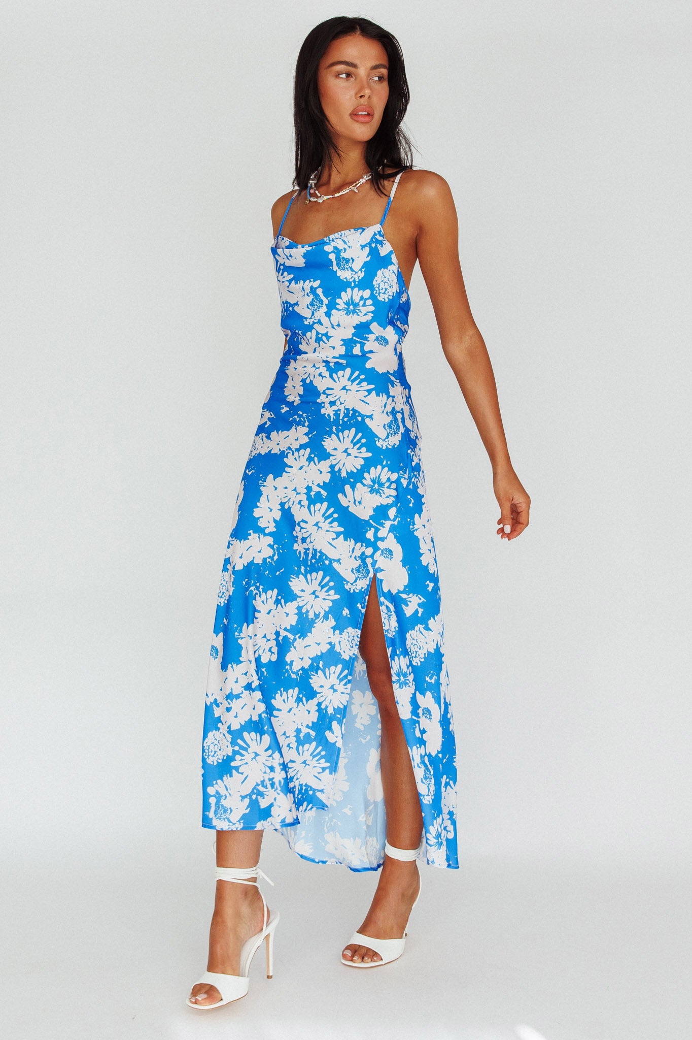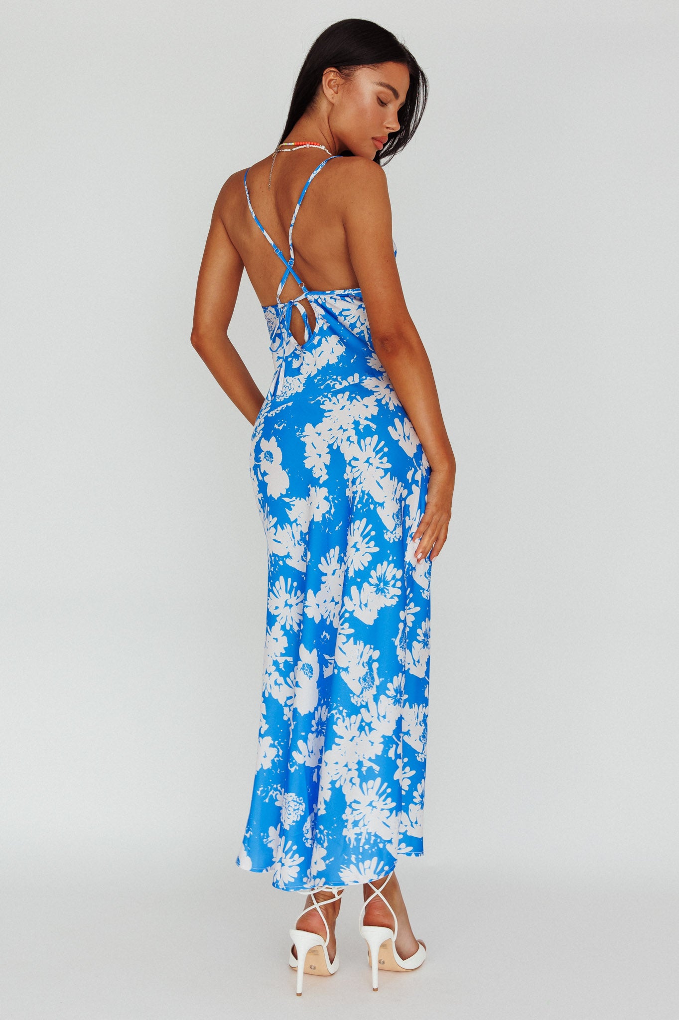 Sherilyn Criss-Cross Back Midi Dress Blue Floral