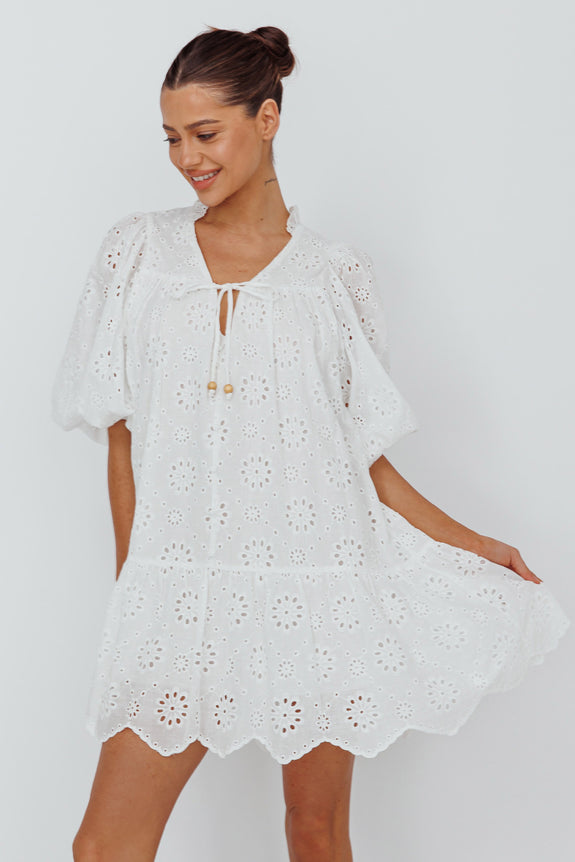 Twirl through your day in our adorable She's A Gem mini dress. We are in love with its relaxed fit and pretty eyelet embroidery fabric. Perfect for weekend coffee dates with your girls teamed with western boots and a slouchy tote for a chic look we are loving.