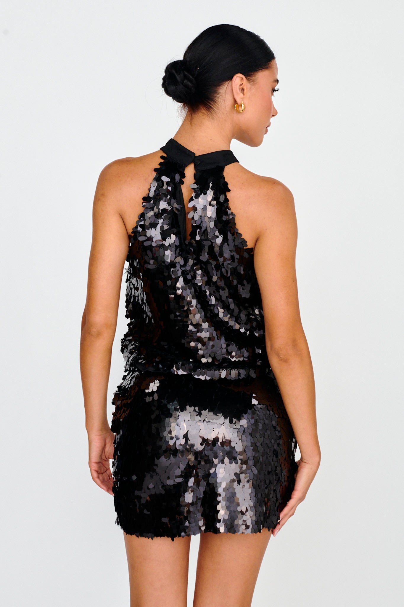 Make a statement in our hot She's So LA top. We are loving the glitzy sequins throughout! Perfect for a glam girls' night out! Team it with its matching skirt and strappy heels for a look that'll get you all the attention.