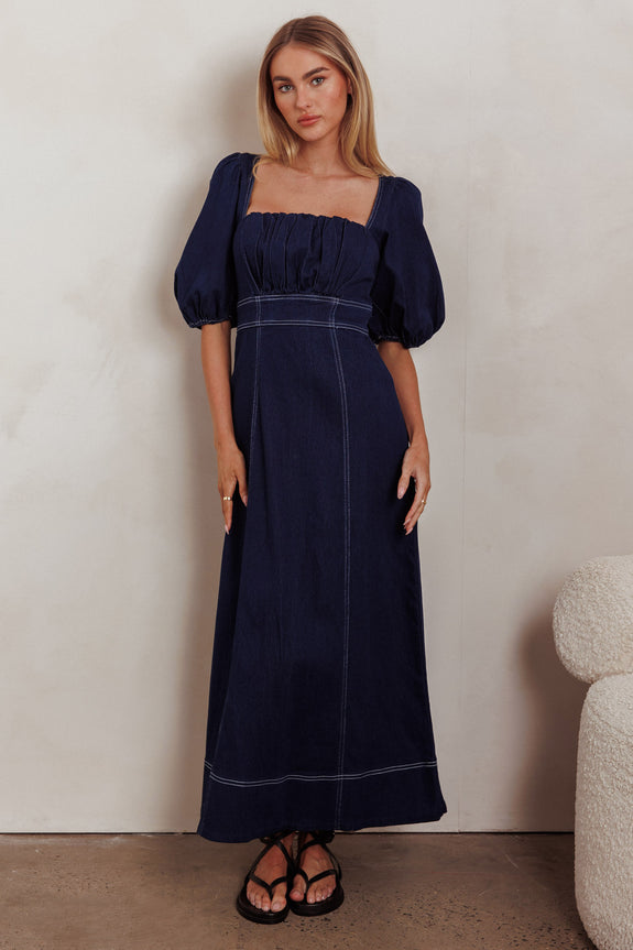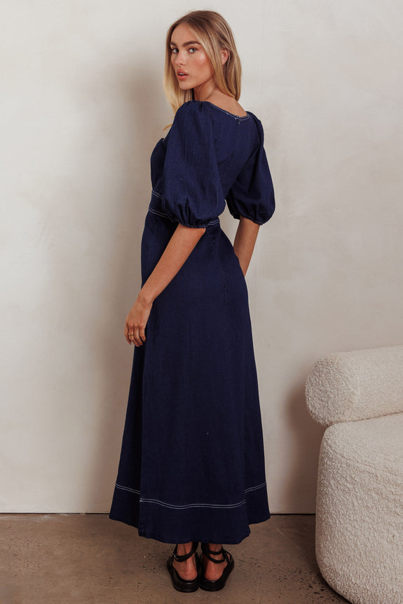 Sibille Puff Sleeve Maxi Dress Denim Indigo
