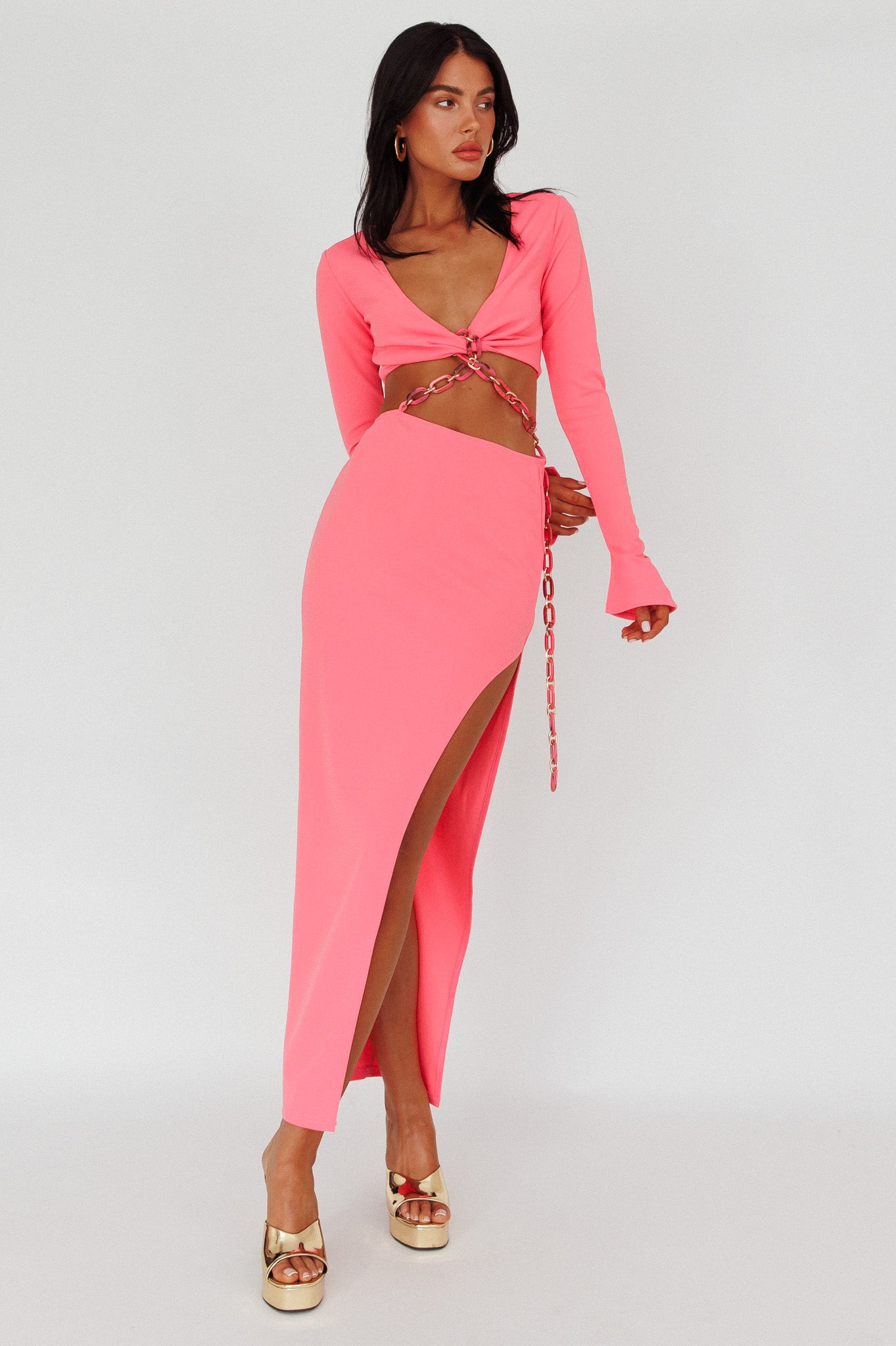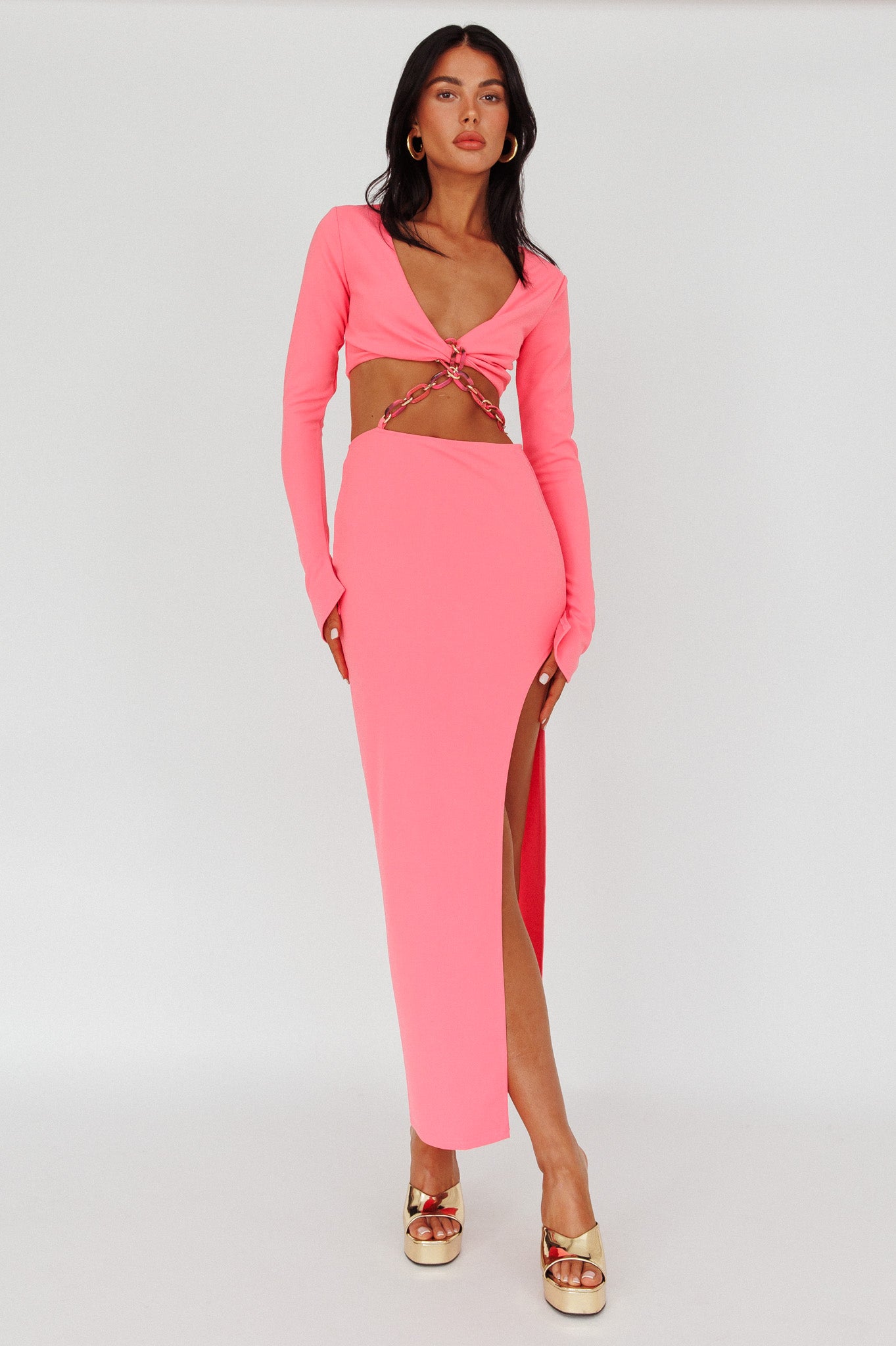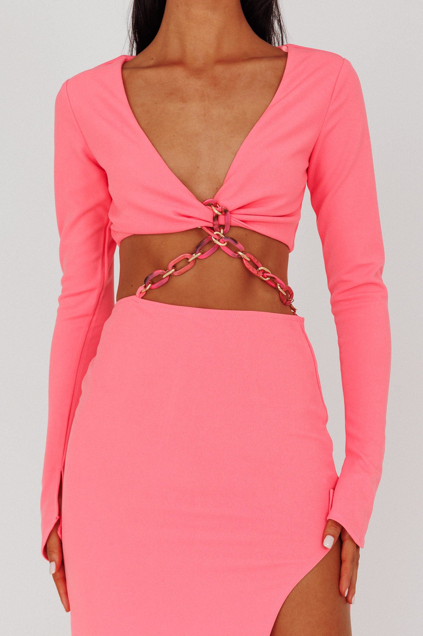 Sigournie Long Sleeve Chain Midi Dress Pink