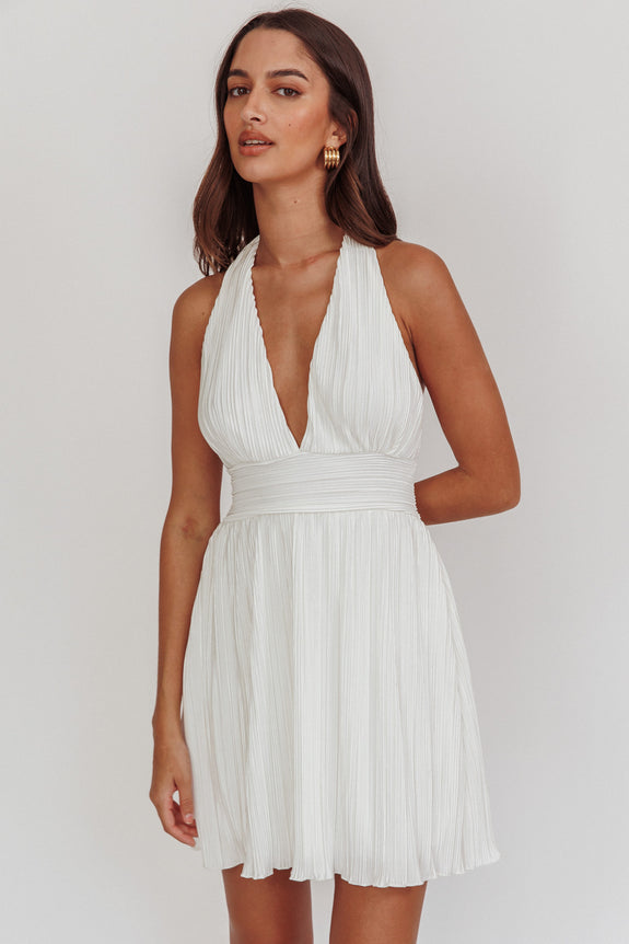 You will steal the show in our super cute Sinia mini dress. We are obsessed with its plisse fabric and halter neckline. Perfect for a bridal shower or birthday party! Team it with strappy, white heels and a clutch for an adorable look.