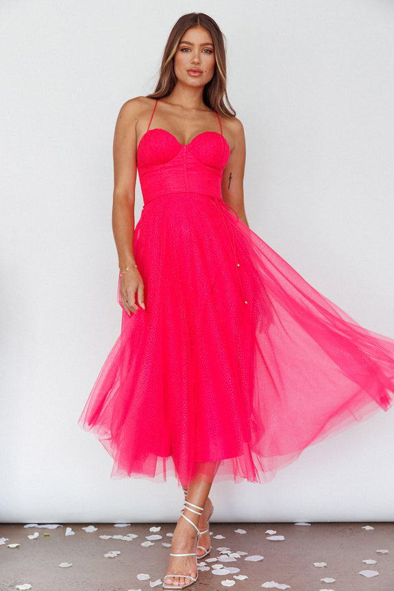 Smitten Sweetheart Neckline Chiffon Midi Dress Fuchsia
