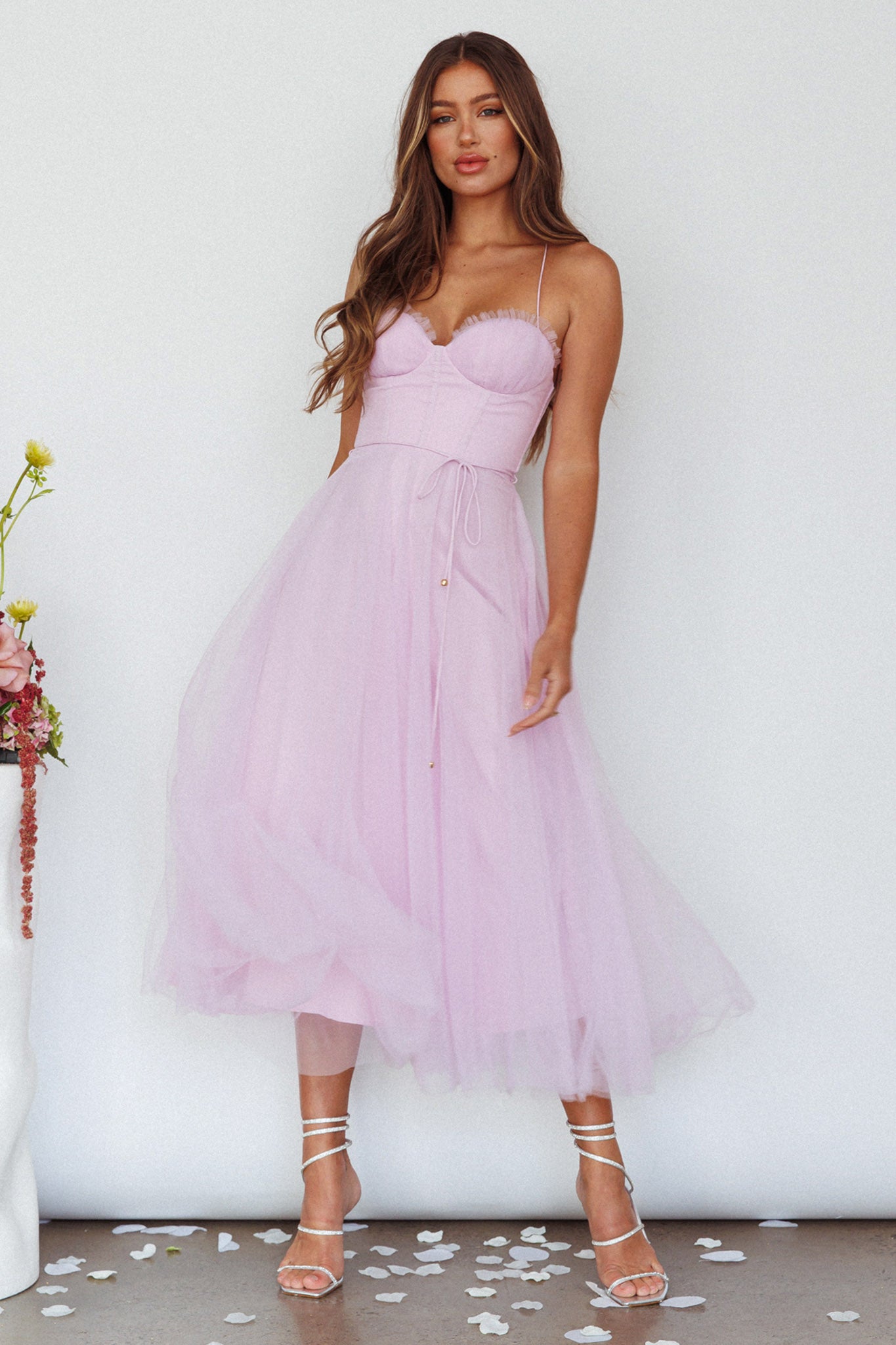 Smitten Sweetheart Neckline Chiffon Midi Dress Orchid