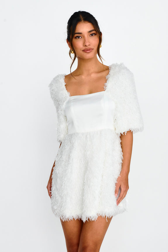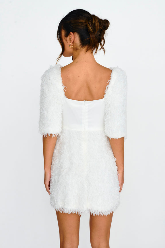 You'll look like you just stepped out of Heaven in our pretty Snowflake mini dress. Featuring fuzzy embellishment in the sleeves and skirt, it's perfect for a Christmas party or New Years celebration! Team it with silver, strappy heels and a clutch for an unforgettable look.