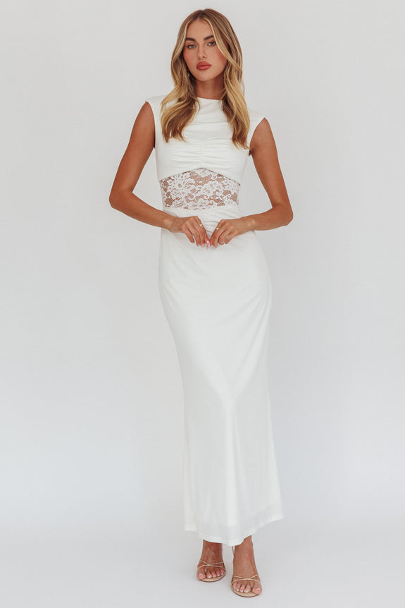 You'll be flooded with compliments in our stunning Solara maxi dress. It features a pretty, sheer lace waist and gathering detail and is perfect for a bridal shower paired with strappy heels and a tote for an unforgettable look.