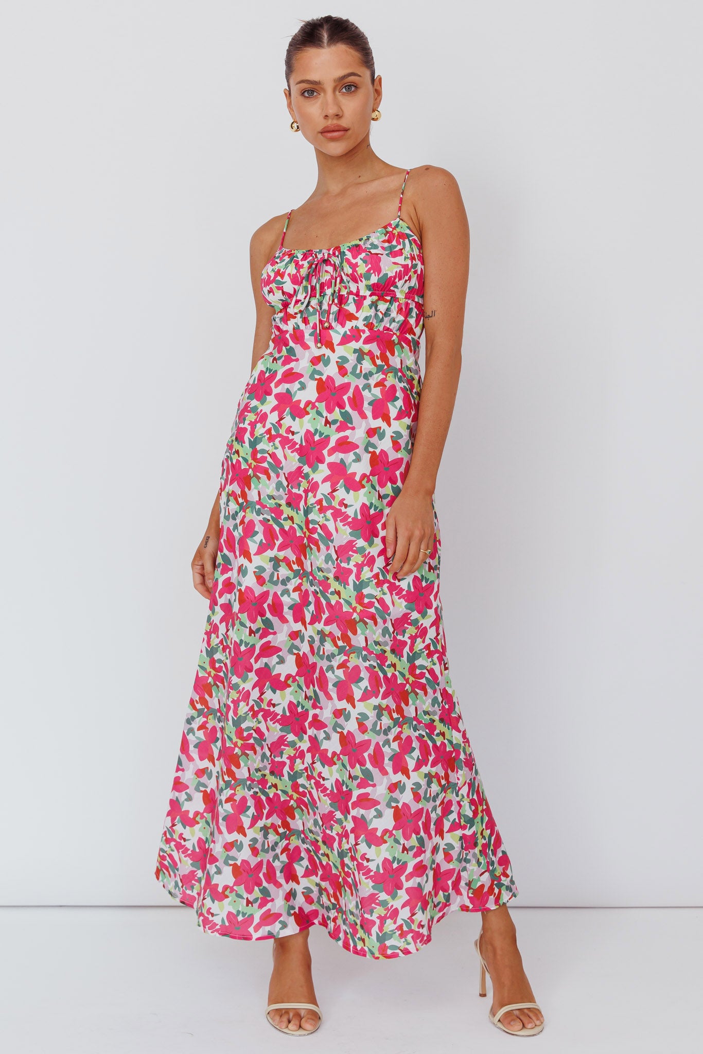 Solstice Noon Tied Bust Midi Dress Print Pink