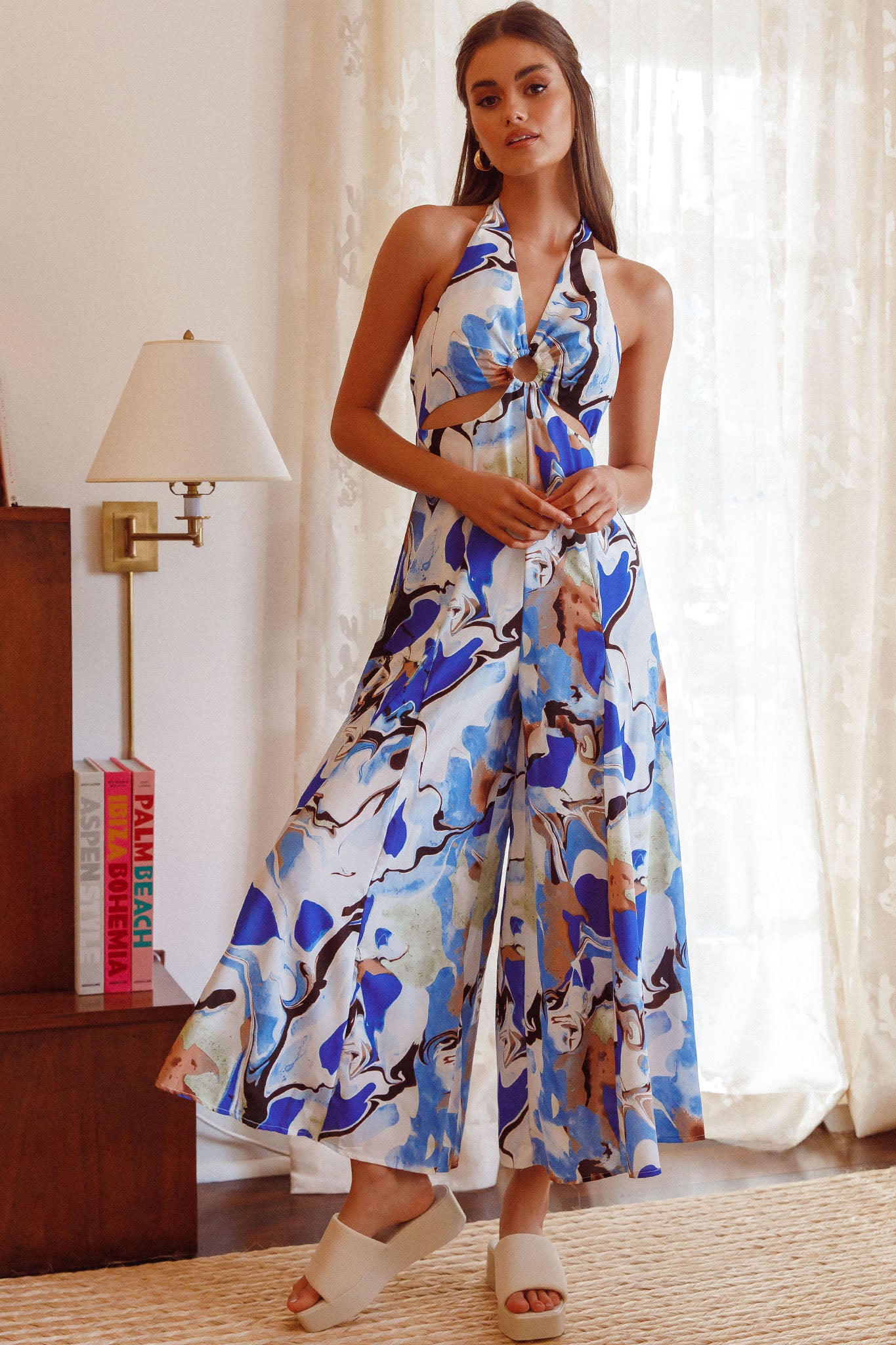 Solstice Sun Halterneck Jumpsuit Swirl Blue
