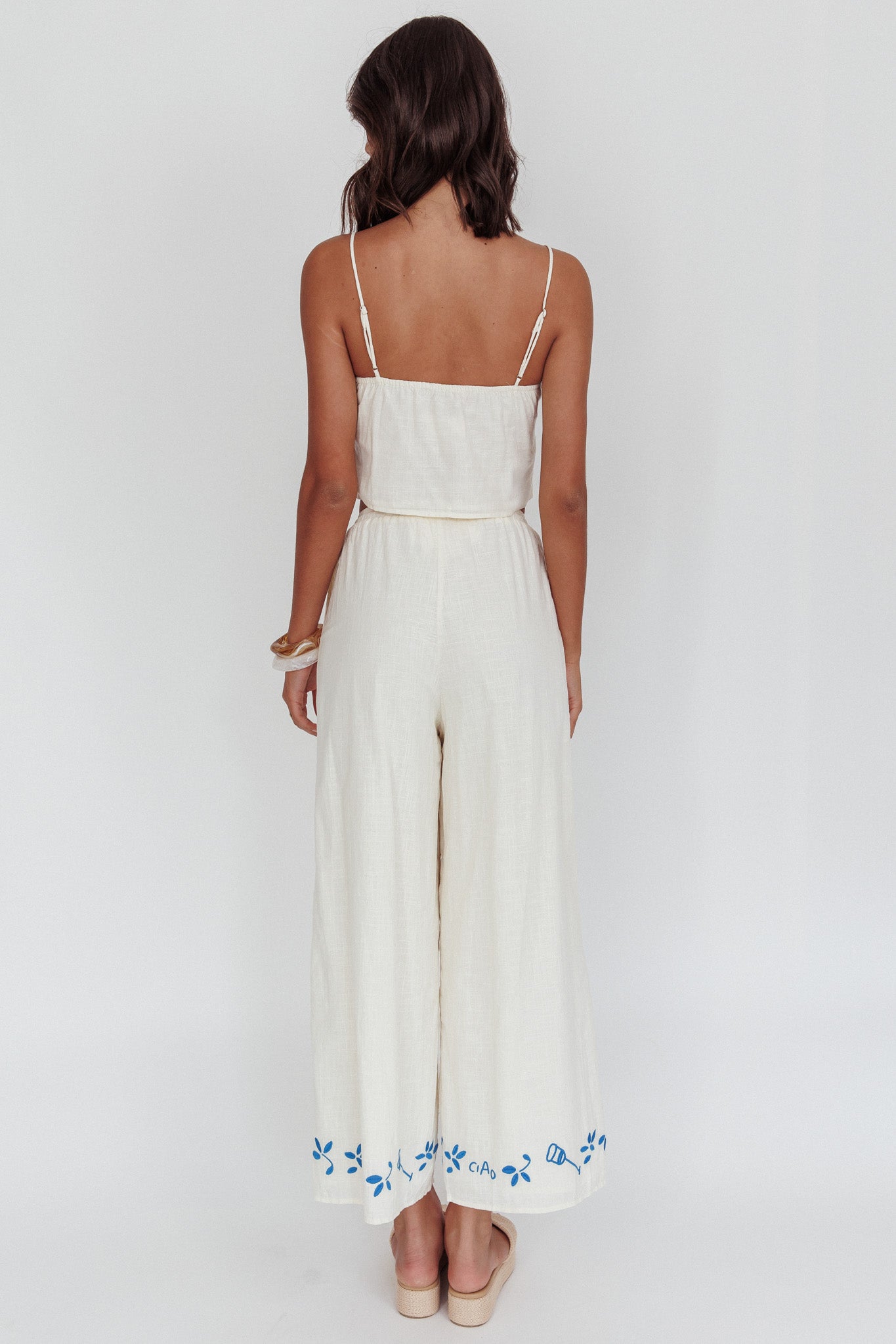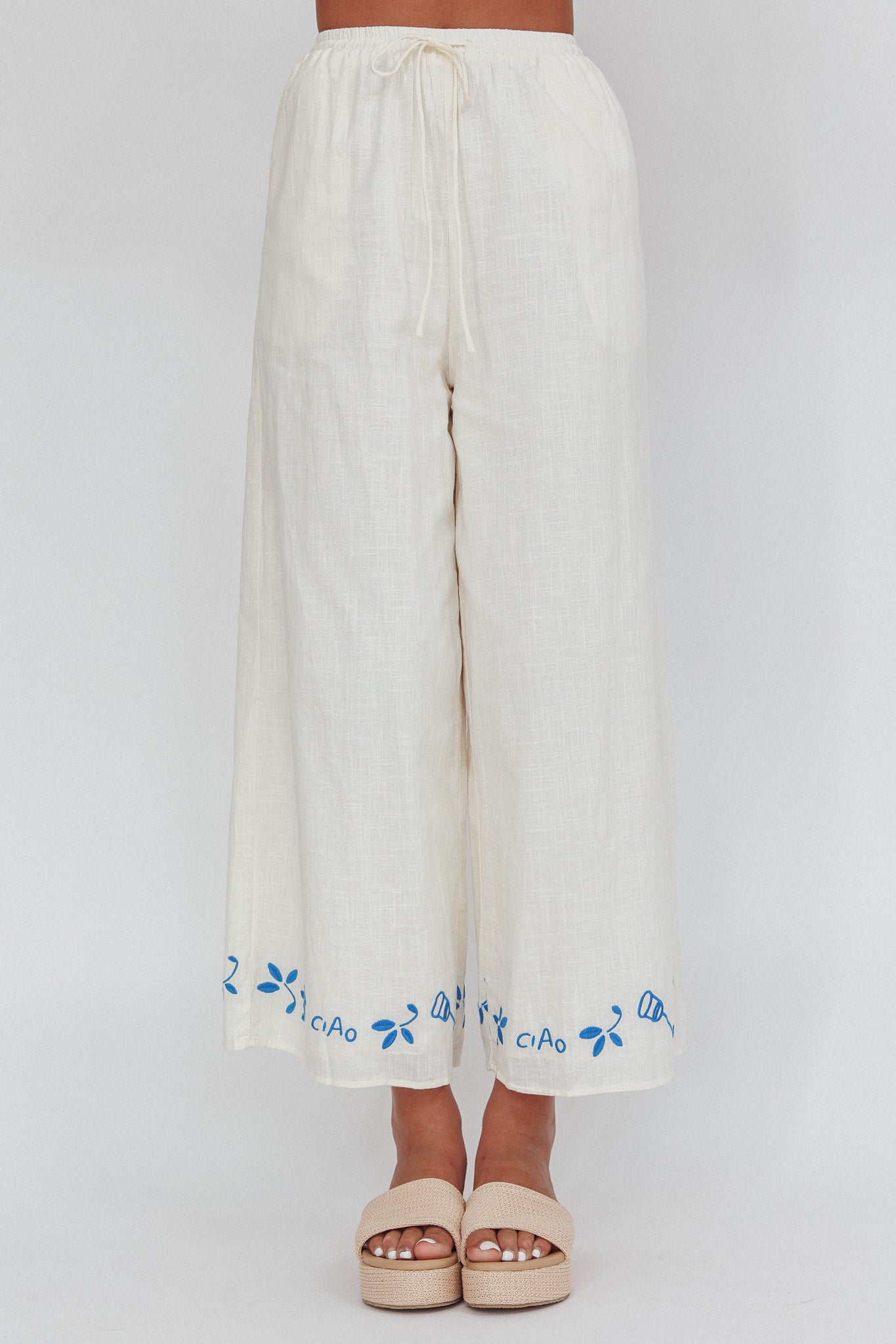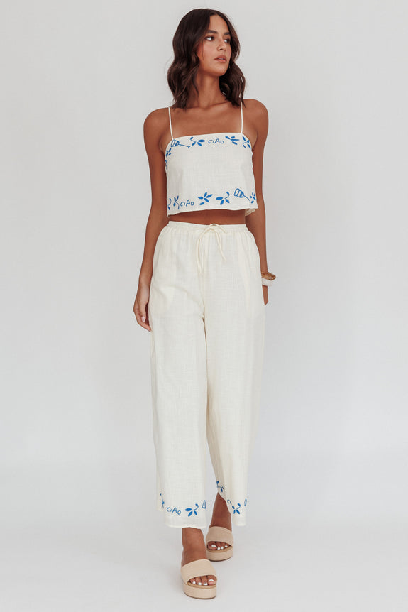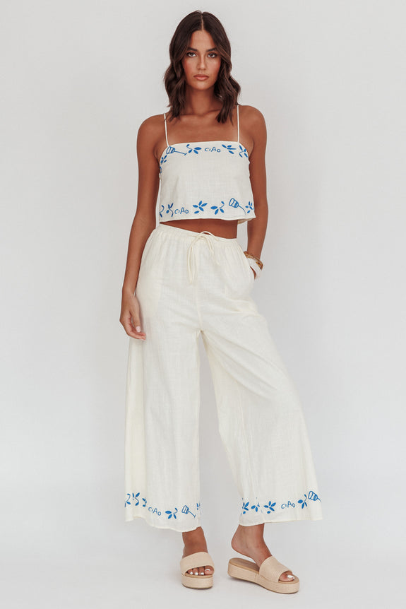 Float through your weekend in our super cute Sorrento Summer pants. We are obsessed with their Italian-inspired embroidery detail and on-trend wide-leg cut. They're perfect for Sunny weekends strolling your fave vintage flea markets with your BFF. Team them with their matching top and slides for a look we are crushing on.