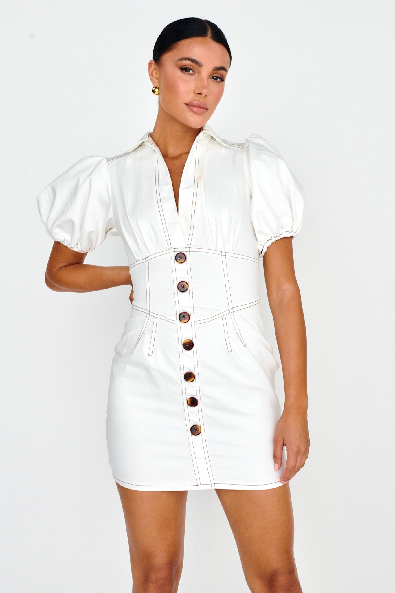 Turn heads in our super cute South Beach mini dress. We are loving the collared neckline and short, puff sleeves. Perfect for weekend coffee dates with your besties. Team it with boots for a night out with your girls or sneakers for a cute-casual look we are crushing on.