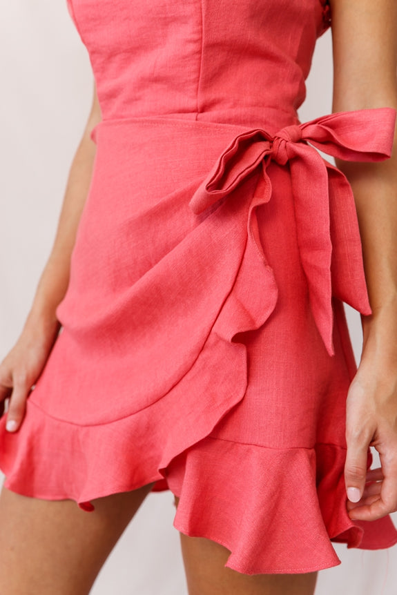 Stacey Frill Bustier Wrap Dress Coral