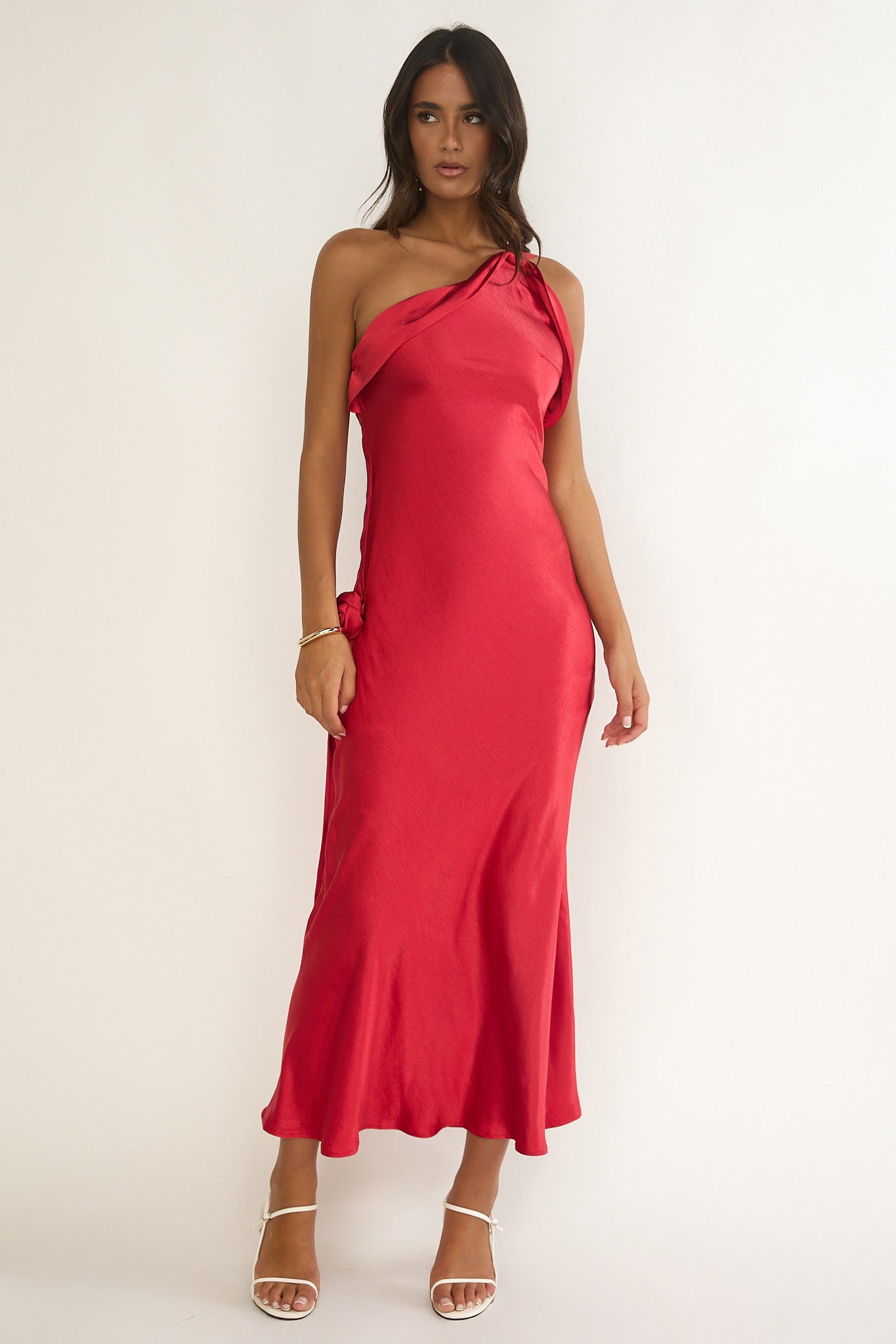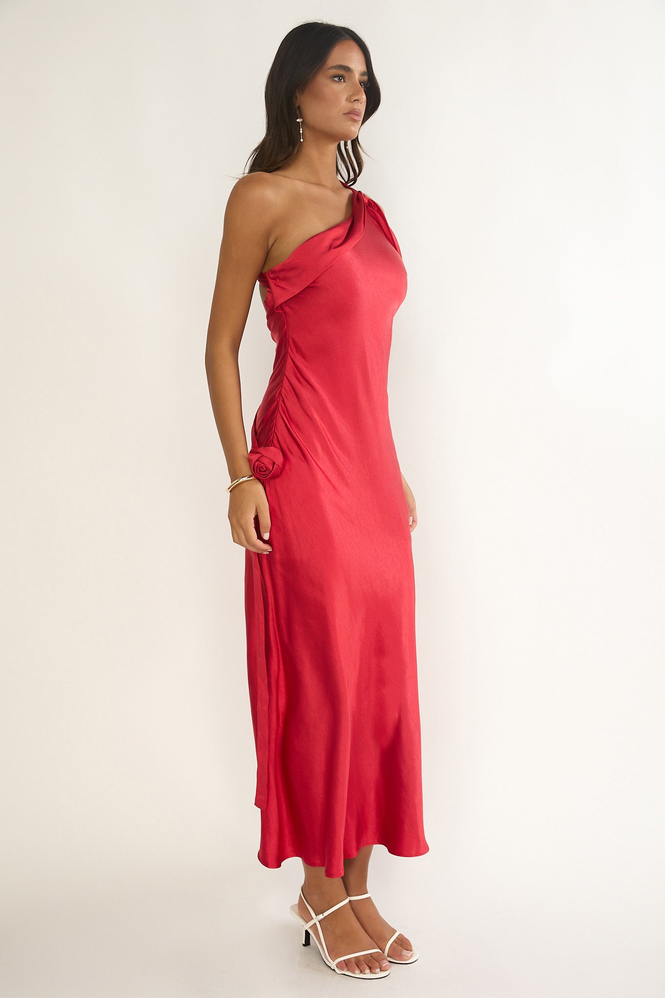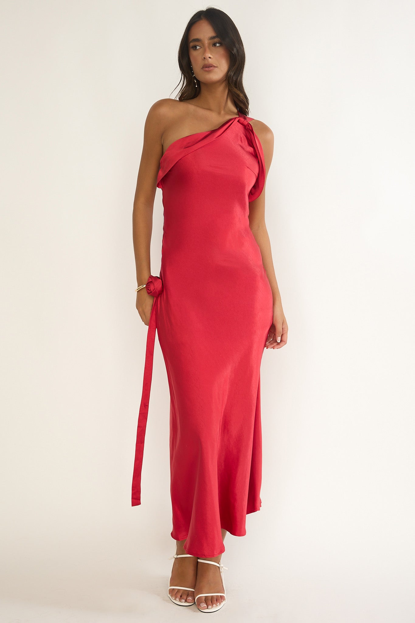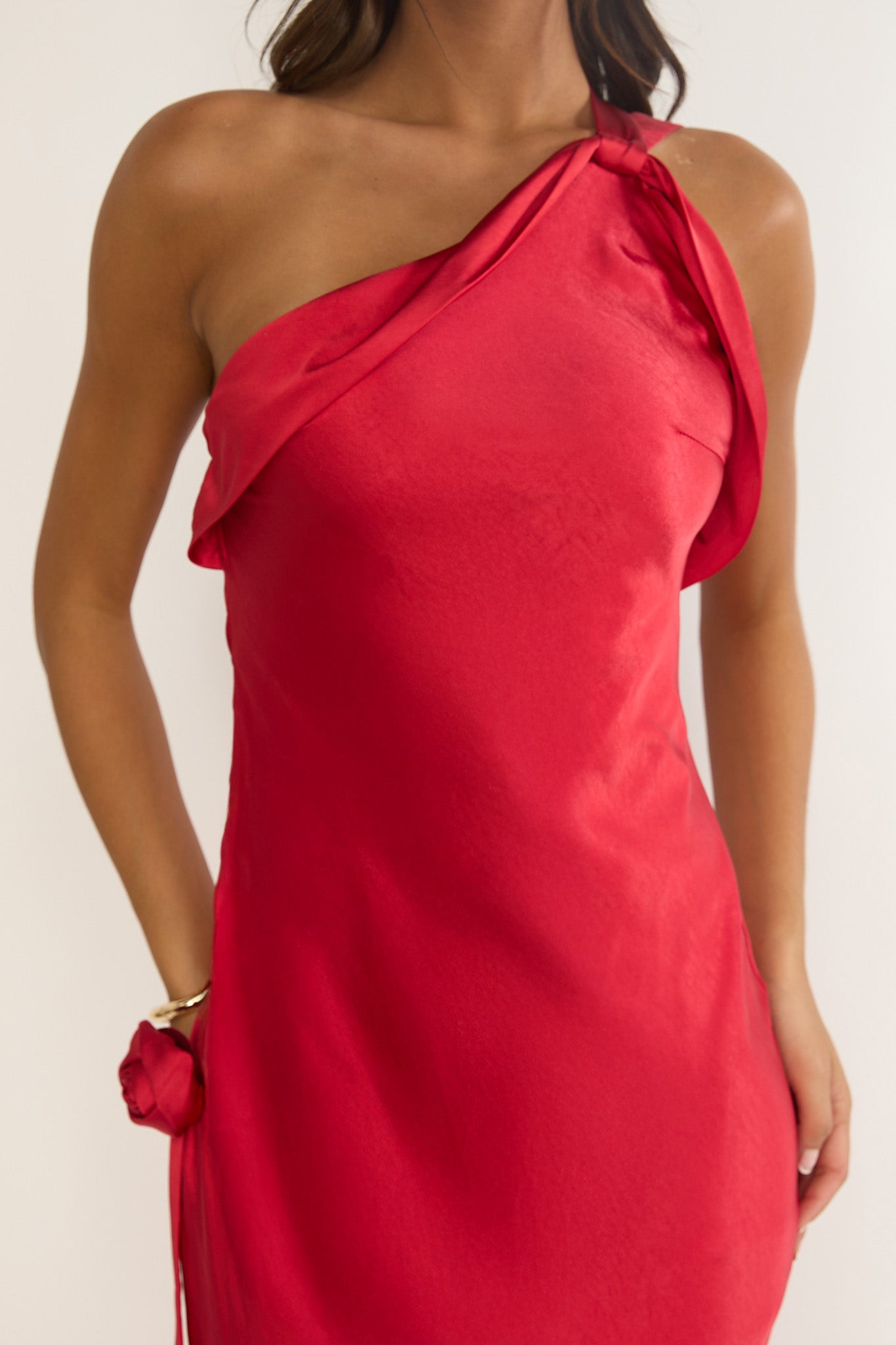 This dress is giving us all the main character vibes and we are obsessed! The one-shoulder design with rosette detail is super chic and perfect for your next glam event. Throw on some diamante heels and statement earrings to complete the look.
