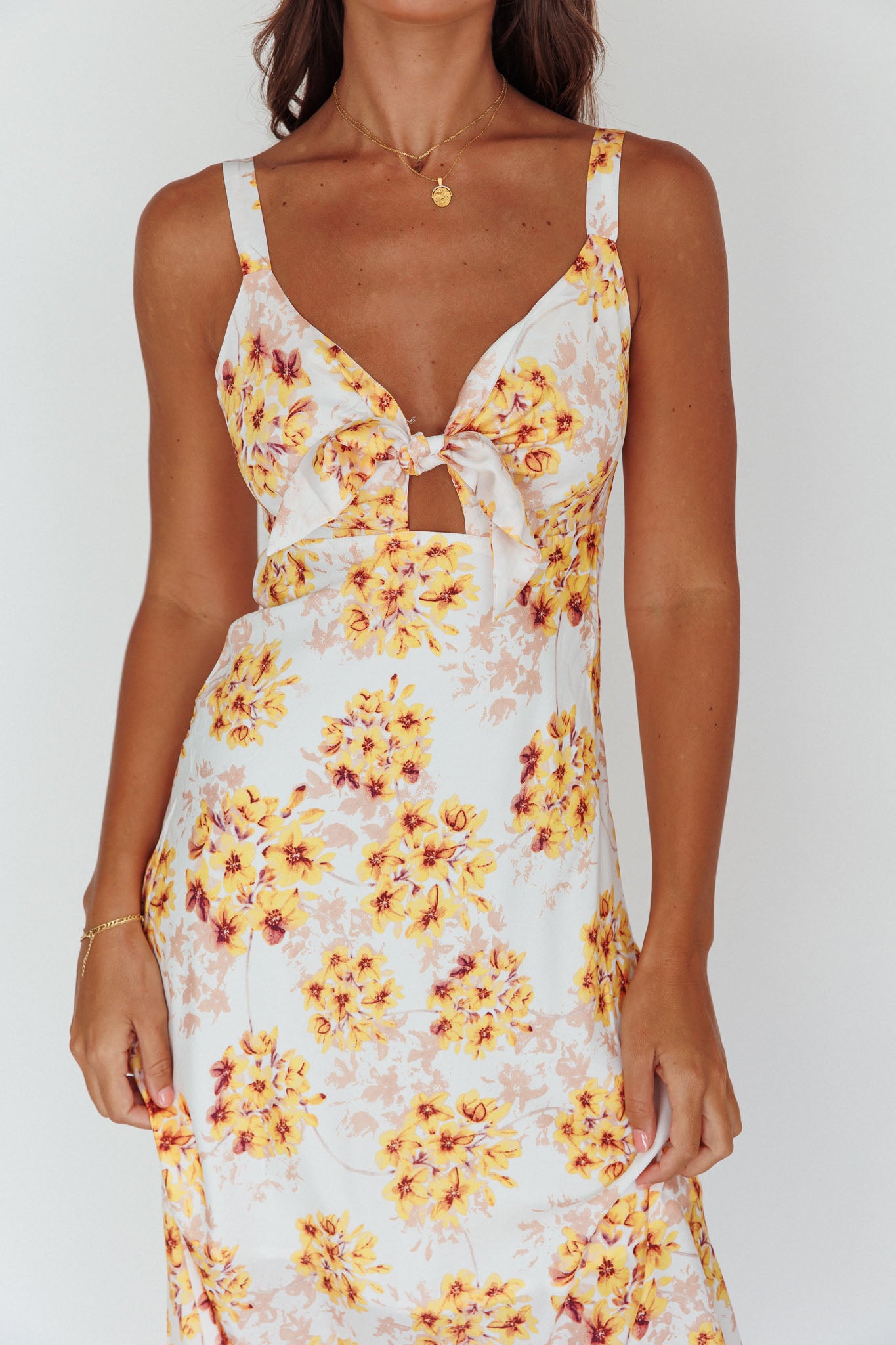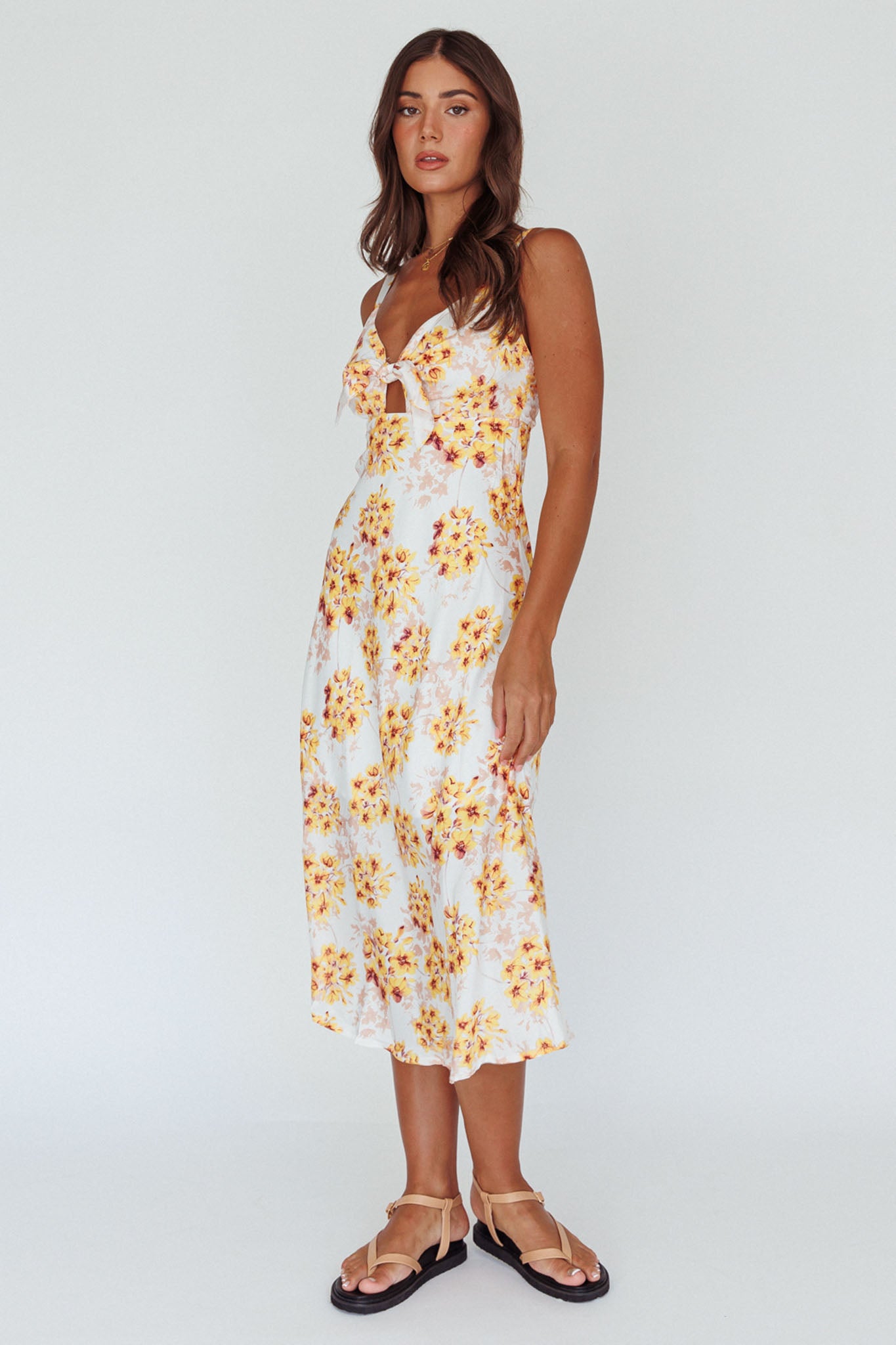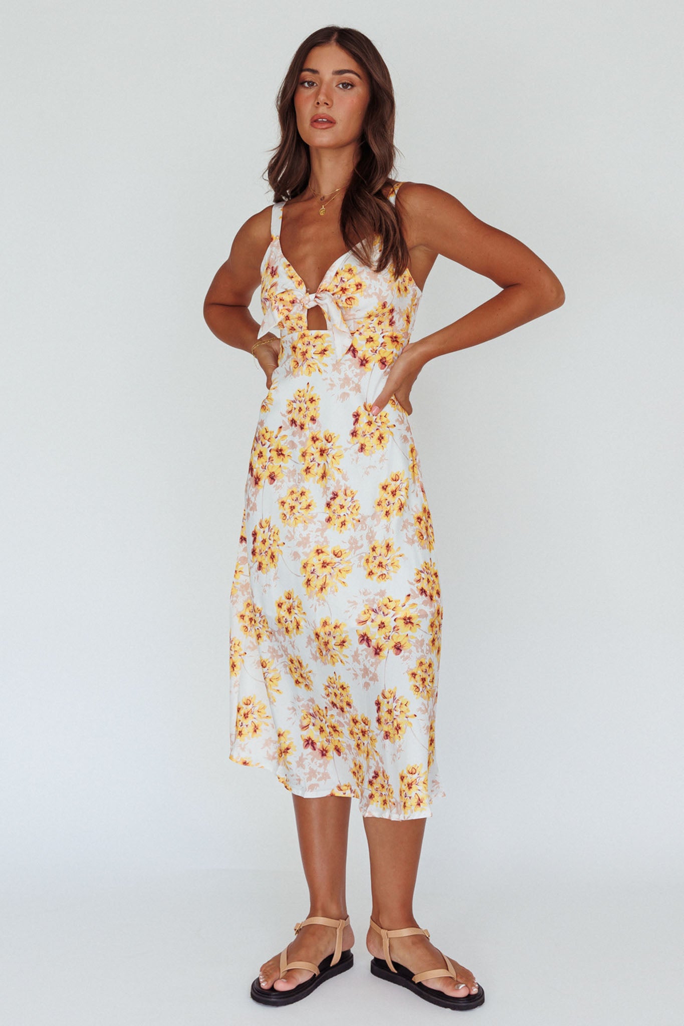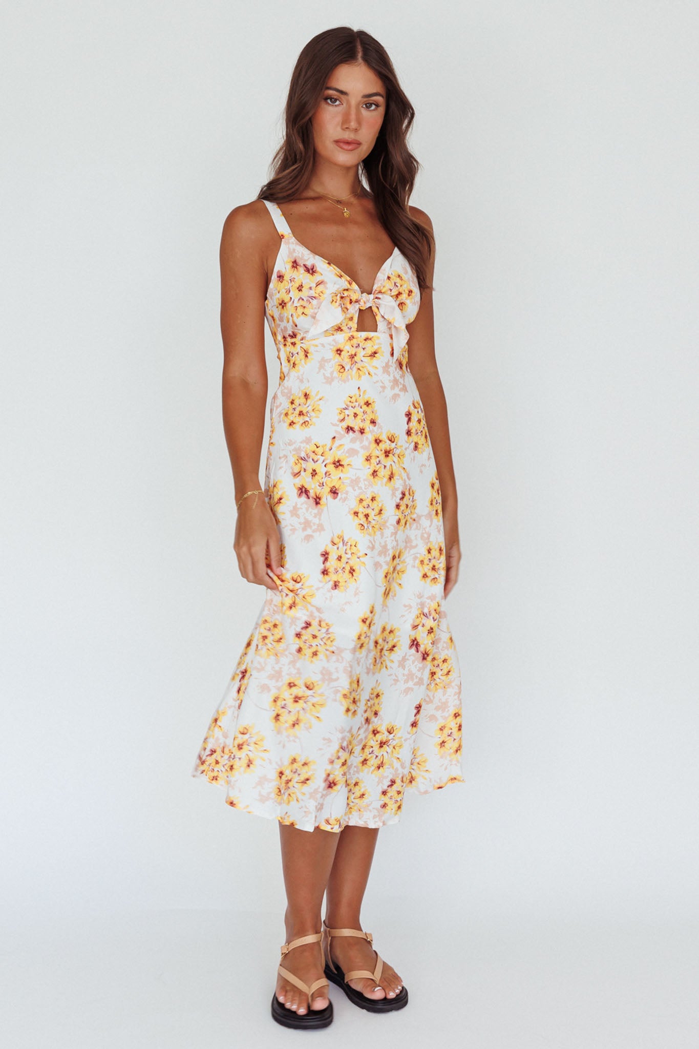 Starry Night Bust-Tie Midi Dress Floral Yellow