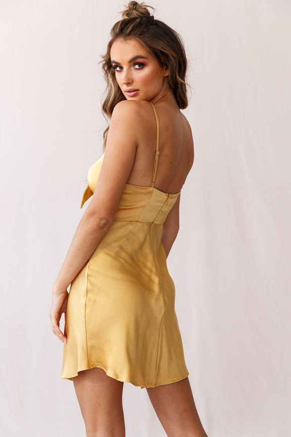 Make an entrance in our slinky Starry Night Dress. Perfect for when you've got someone to impress. Featuring soft, satin fabric throughout, a super cute fitted bust with a tie-knot feature, adjustable straps and zipper closure in the back. Team it with barely-there, single strap nude heels, delicate jewelry and a double coat of mascara for all that eyelid batting you'll be doing!