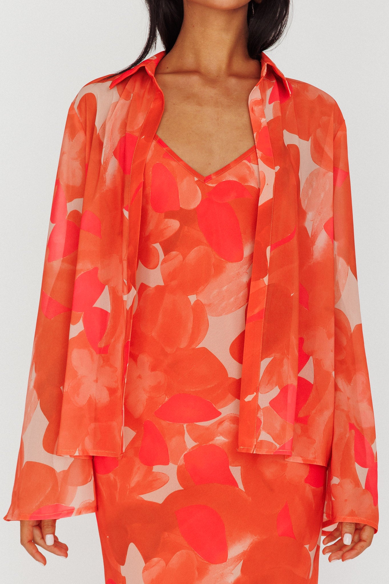 - Orange floral shirt