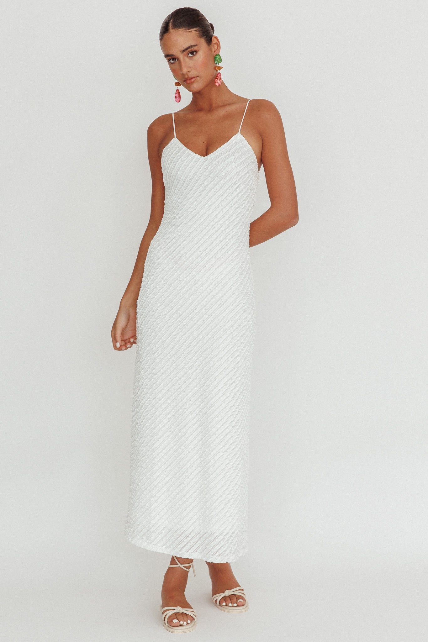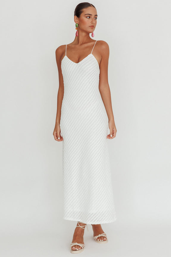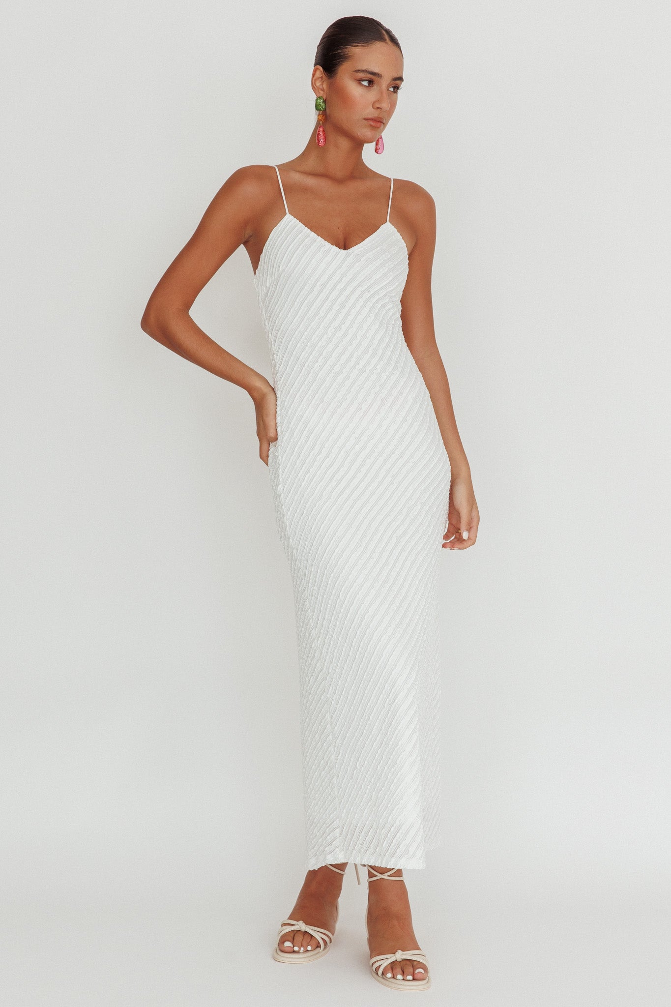 Step into summer with confidence in our chic Stasi textured maxi dress. It features a flattering V-neck and column silhouette. Whether you're having a picnic with your girlies or strolling along the beach, this dress will be your go-to fit. Complete your look with your favourite jewellery and sandals!