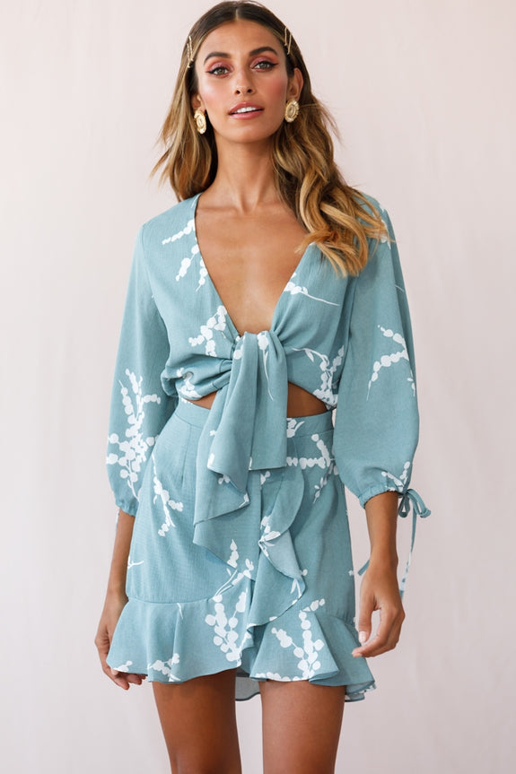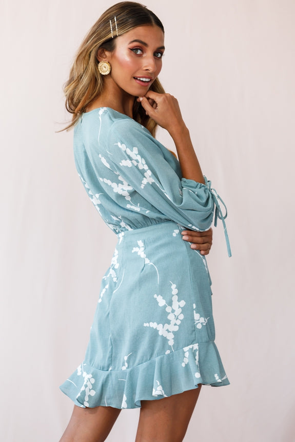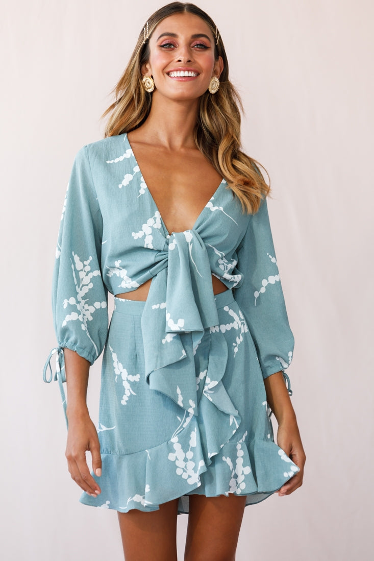 Girls' Night Out? Birthday party? This pretty dress has you covered. With its three-quarter balloon sleeves, flattering tie-knot front and asymmetrical hemline, you'll be turning heads everywhere you go. Pair it with clear mules and gold hoops for a look we are loving.