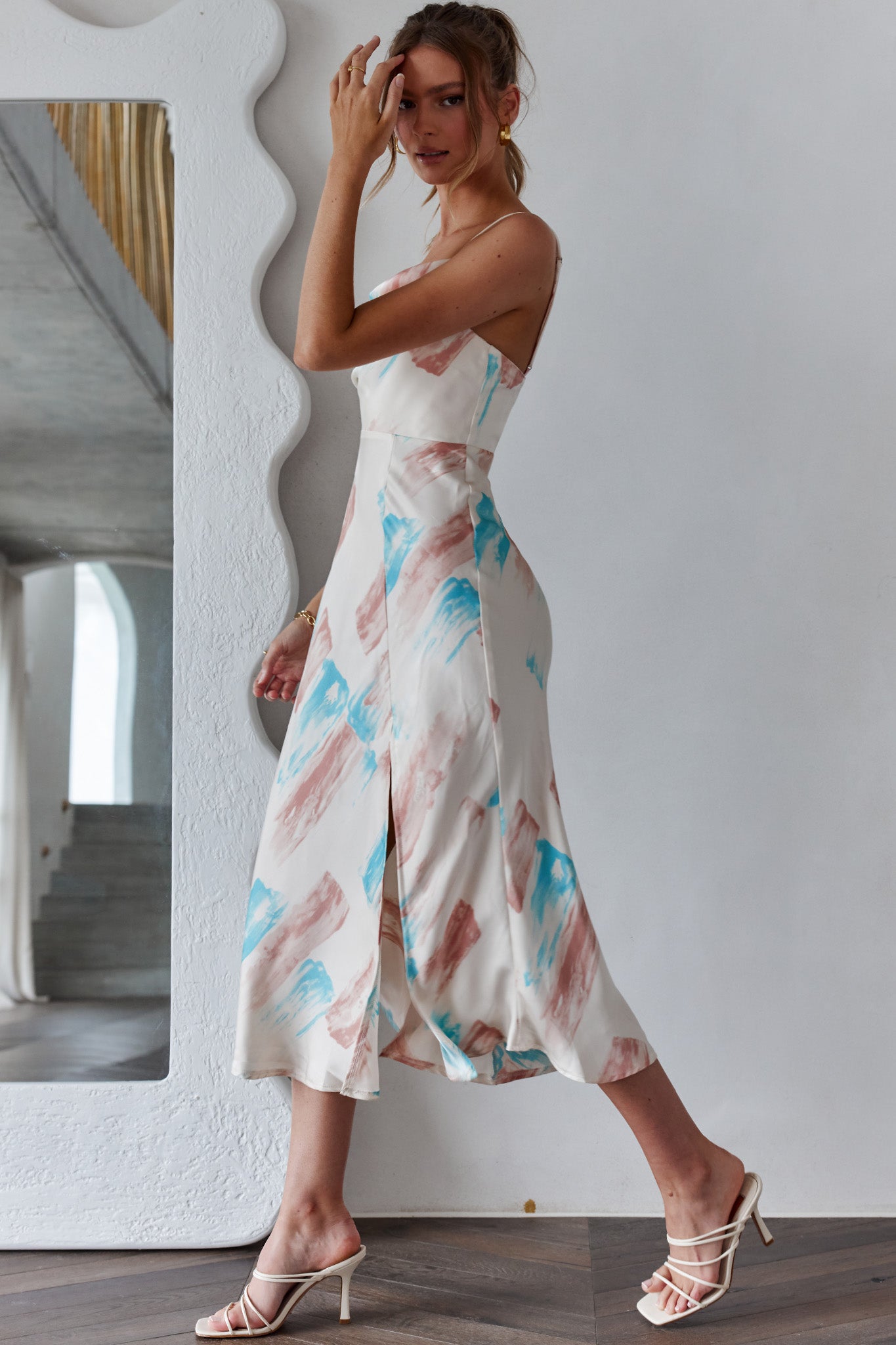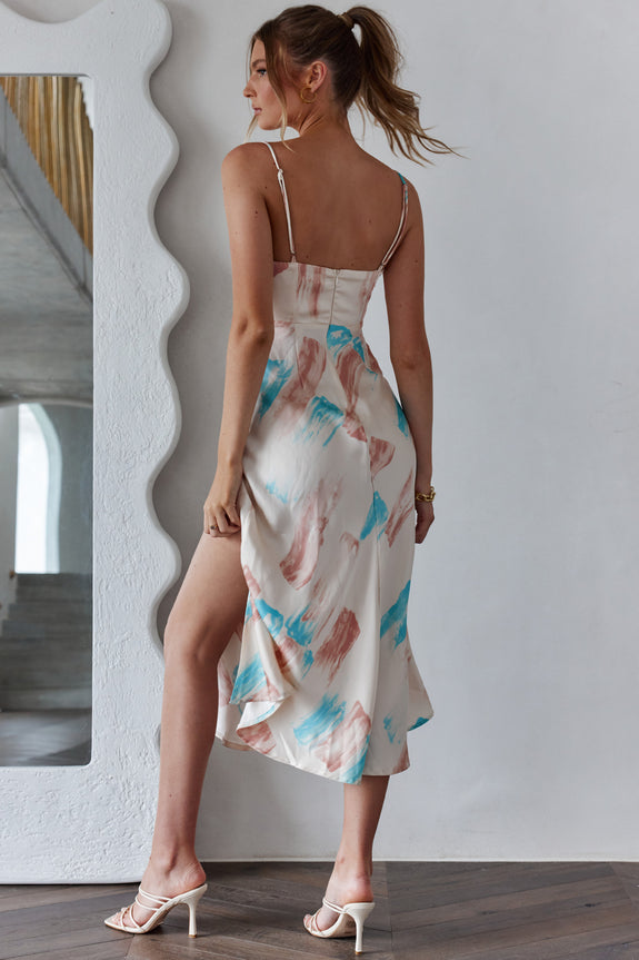 Suki Front Split Midi Dress Watercolor Paint Print Pink