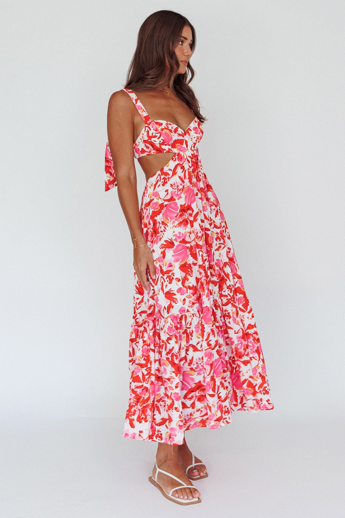 Sun Seeker Tied Shoulder Cut-Out Maxi Dress Floral Red