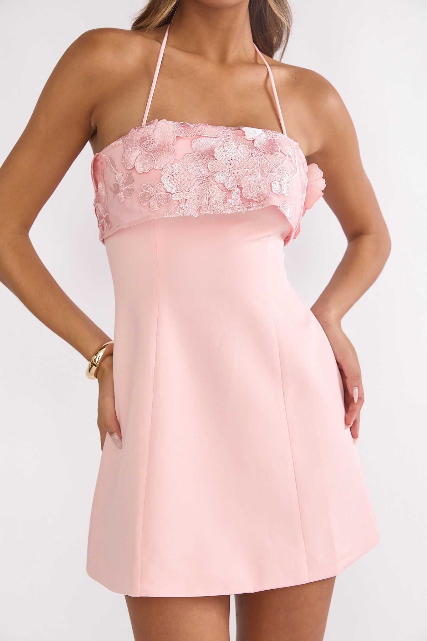 Bring on the sunshine in our Sunbeam Kiss mini dress. Featuring a sweet halter neckline and floral embroidered bust, this beauty radiates effortless charm. Perfect for brunch dates, garden parties, or your next weekend getawayjust add some dainty jewelry and your fave kitten heels.