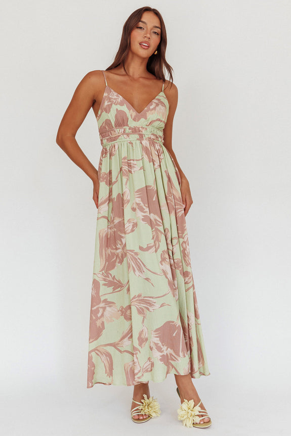 Sunny Afternoon Gathered Waist Maxi Dress Floral Sage