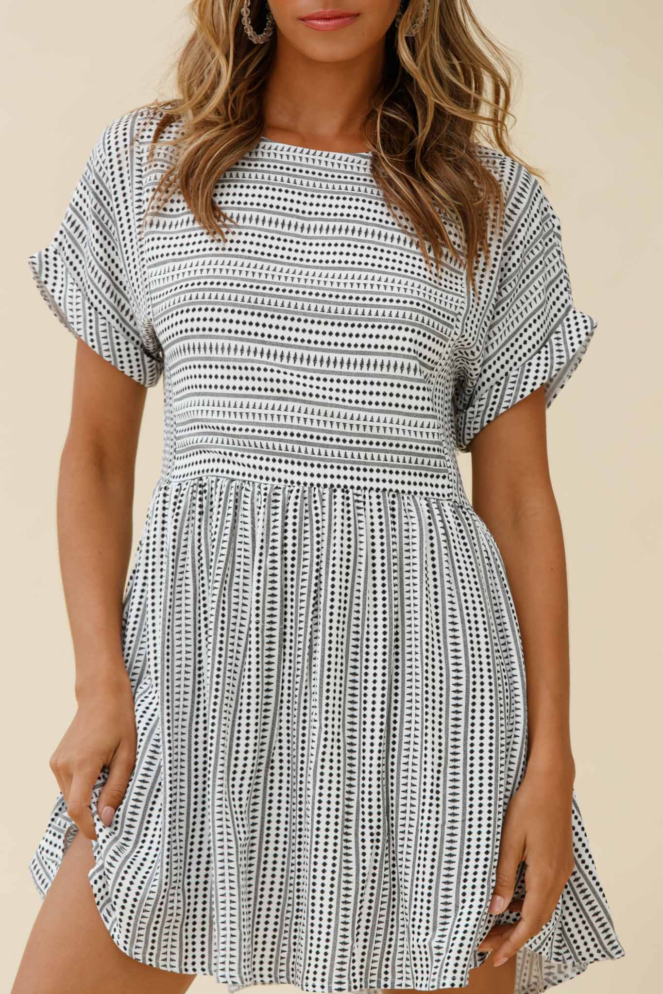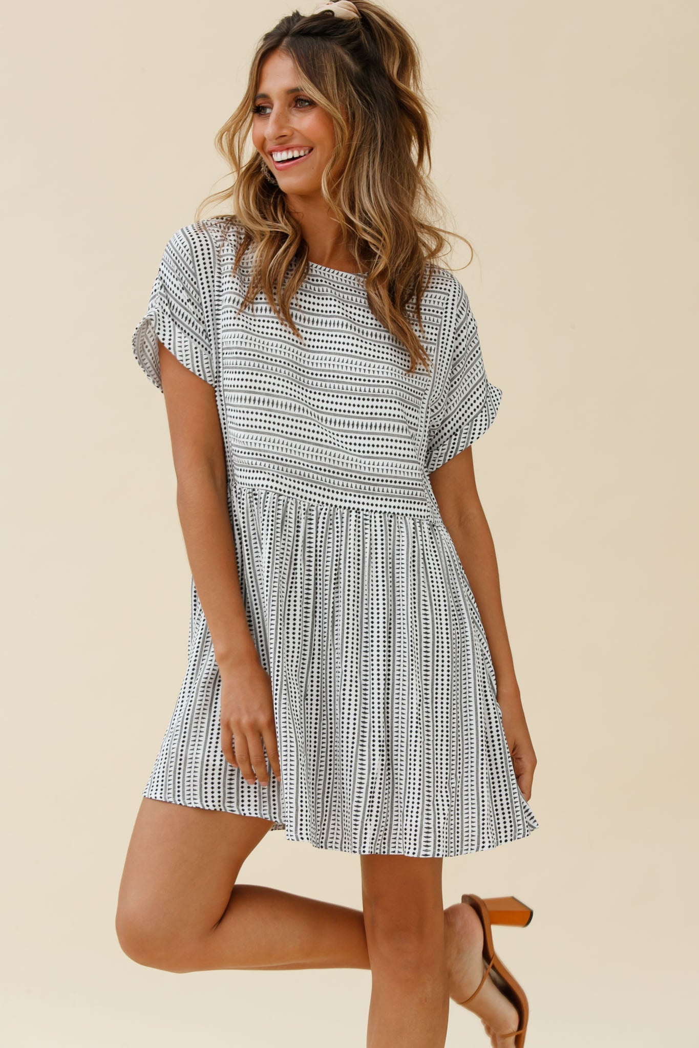 Float through your day in our sweet Susie swing dress. Featuring rolled, t-shirt sleeves and a keyhole button-up back. Perfect for warm Summer days gettting ice cream with your bffs and catching up on the latest goss. Team it with tennis shoes and a head scarf for a cute, casual look we are all about.