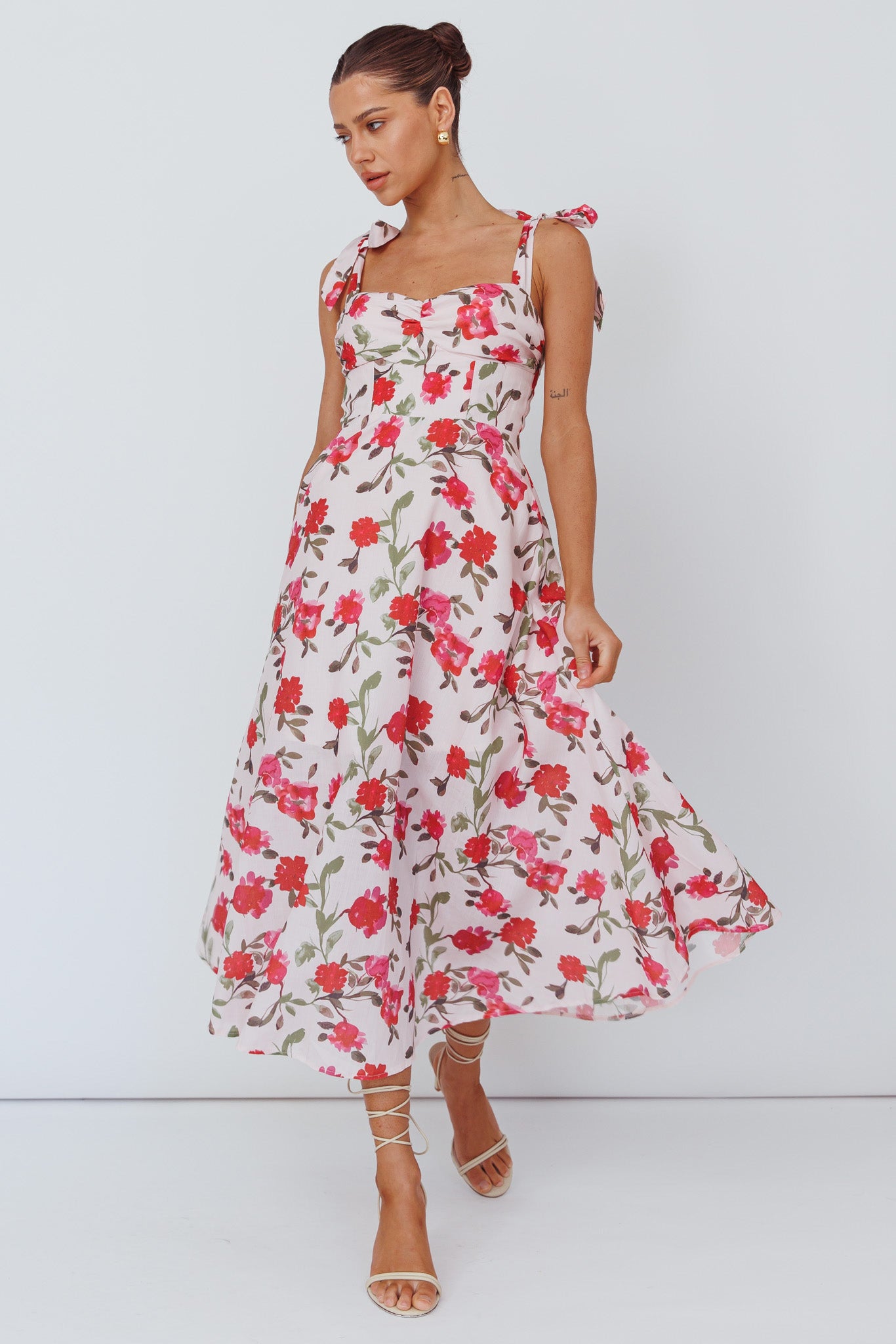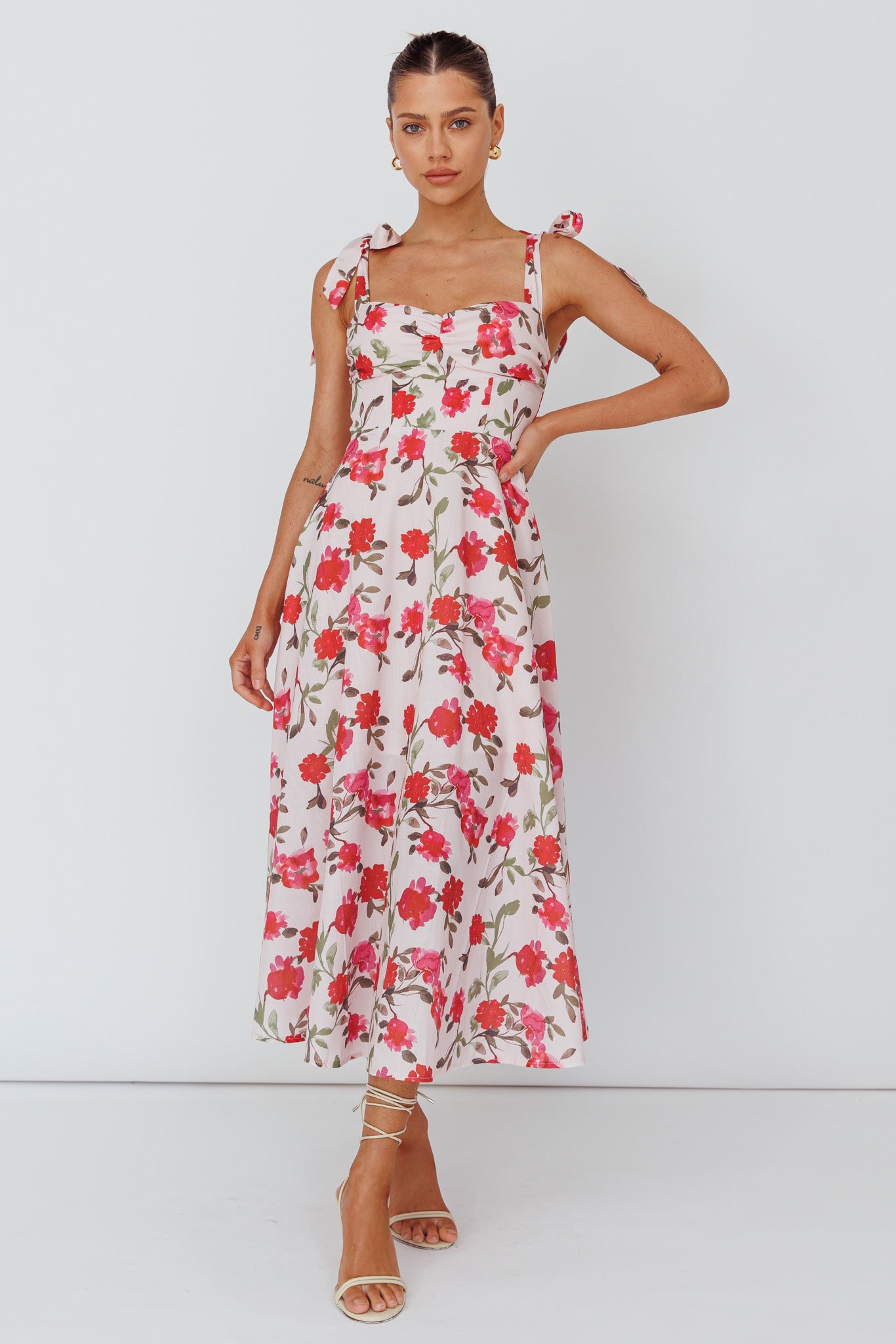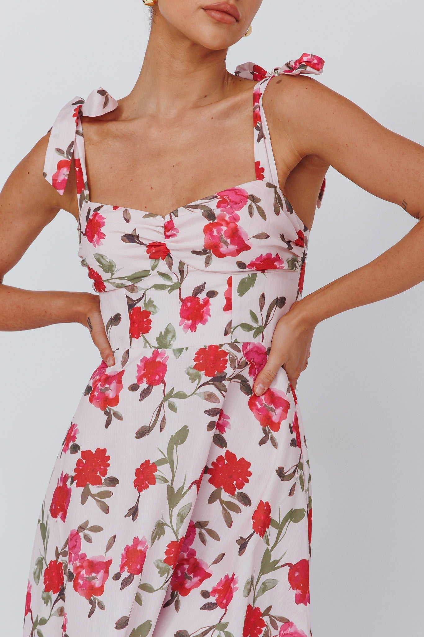 Sweet Pea Tied Bust Midi Dress Flower Pink