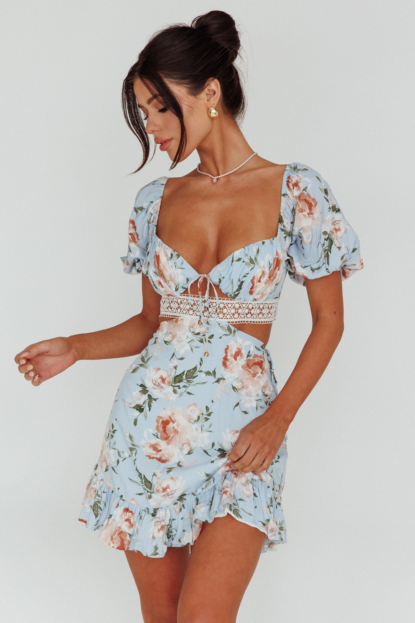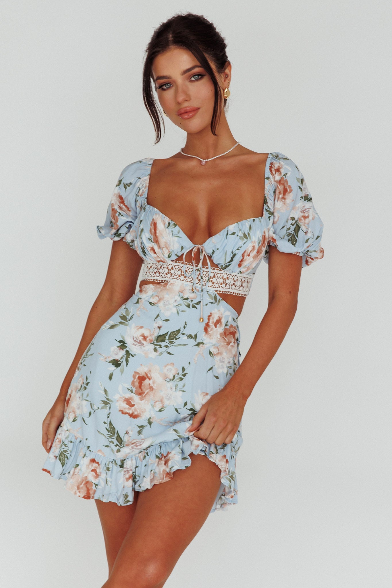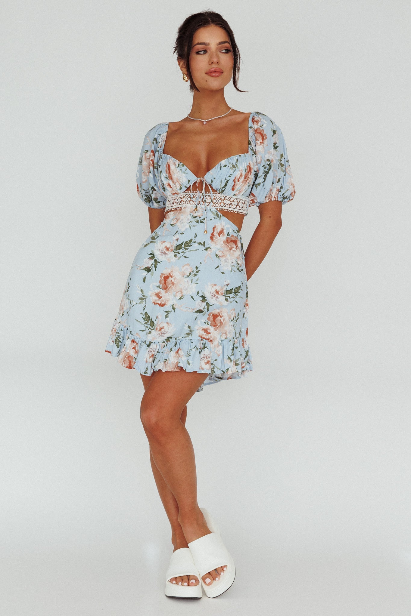 You'll be stealing hearts in our adorable Sweet Romance dress. We are obsessed with its sweetheart bust, cut-out waist and girly puff sleeves. Perfect for a flirty date night or a mimosa brunch with your girls. Team it with nude, strappy heels for a super cute look.