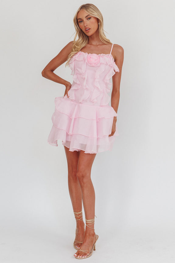 Sweetest Things Frill Trim Rosette Mini Dress Pink