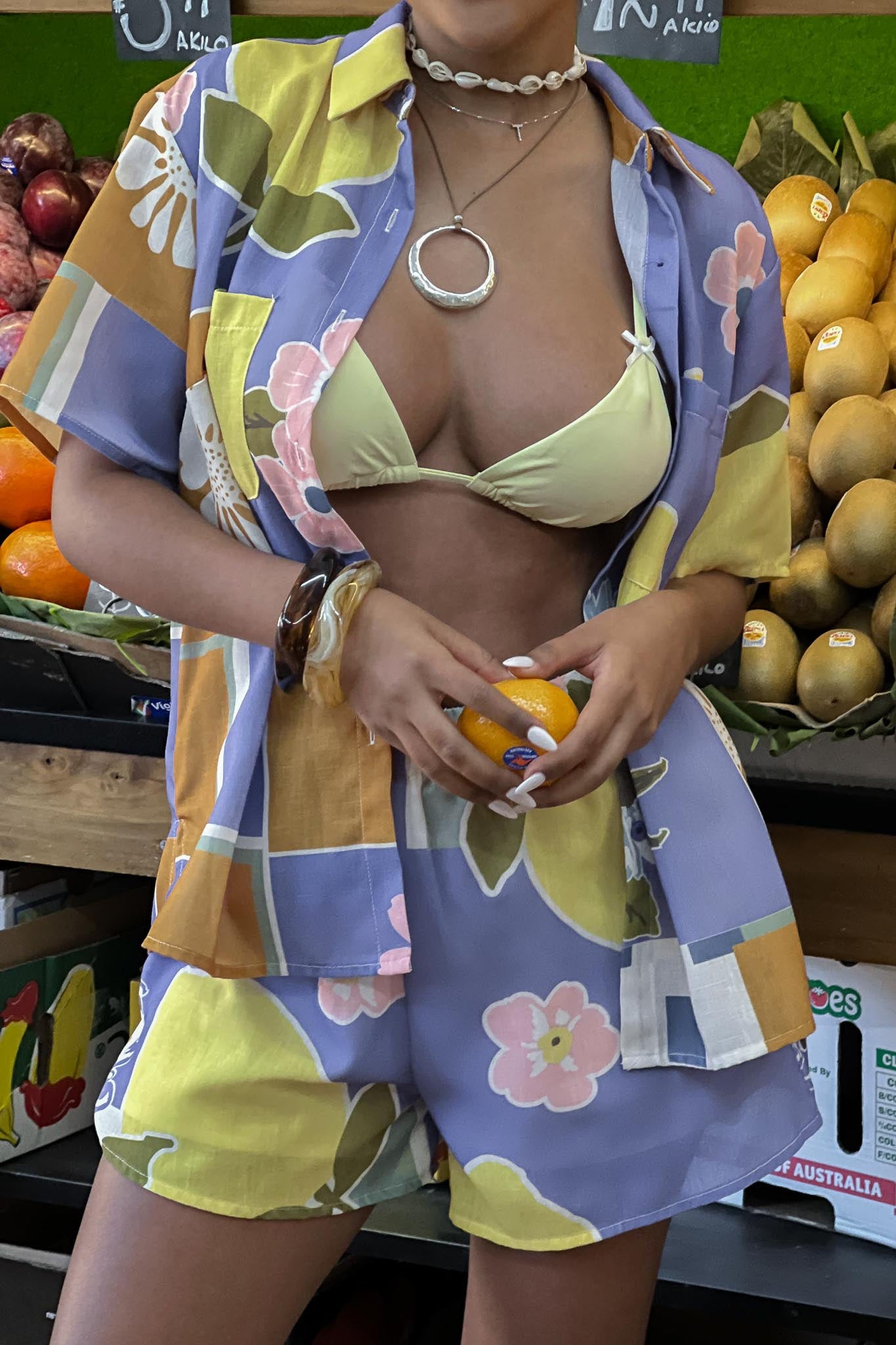 The weekend is calling and you need these shorts. Our Swing Of Things shorts are perfect for coffee dates with your girls or strolling the vintage markets. We are in love with the sweet citrus print. Team them with their matching top and sandals for a casual-chic look we are all about.