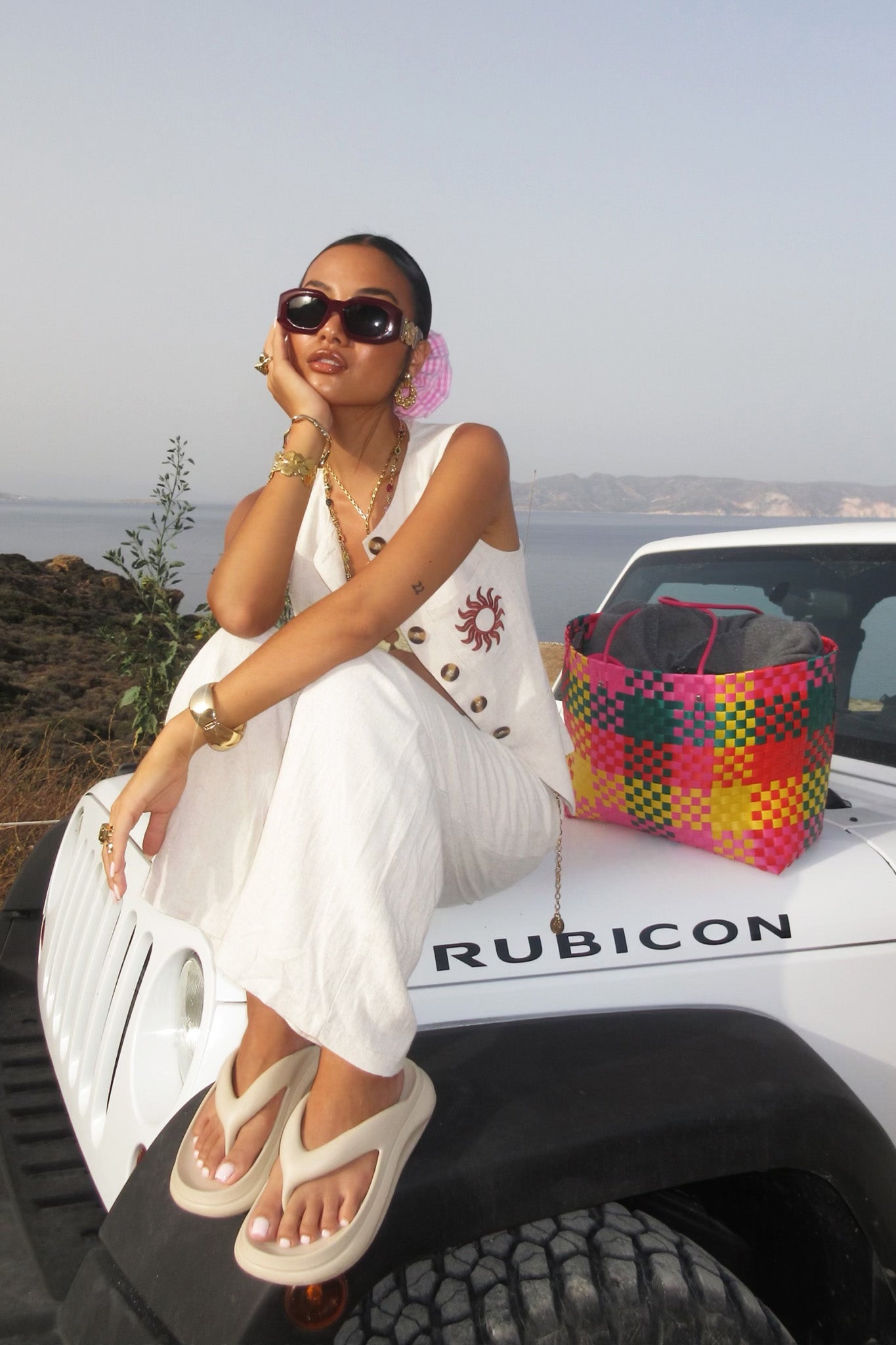 The weekend is calling and you need this casual and comfy vest. Our Swing Of Things vest is perfect for coffee dates with your girls or strolling the vintage markets. We are in love with the sweet sun and moon embroidery detail. Team them with the matching pant and your favorite sandals for a casual-chic look we are all about.