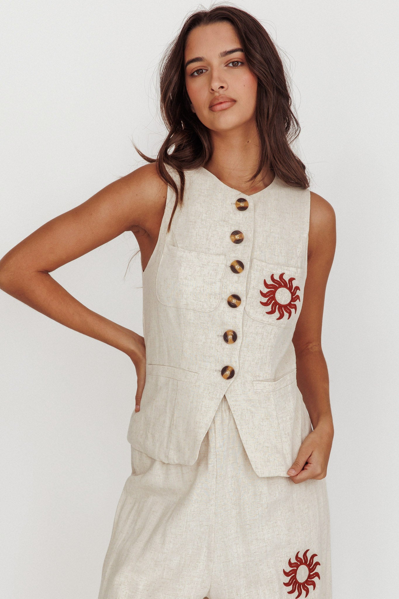 Swing Of Things Sun Sleeveless Buttoned Vest Oat