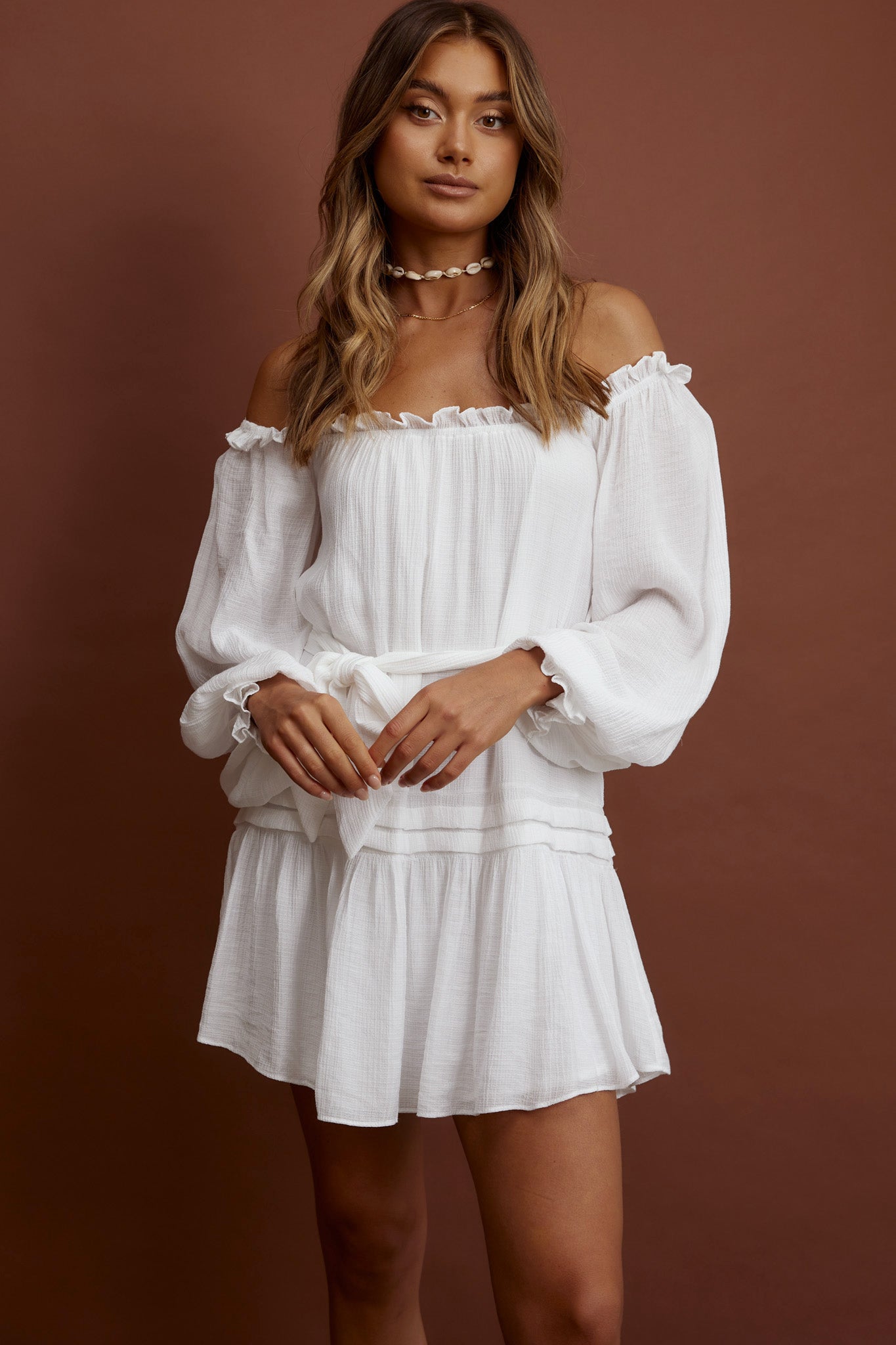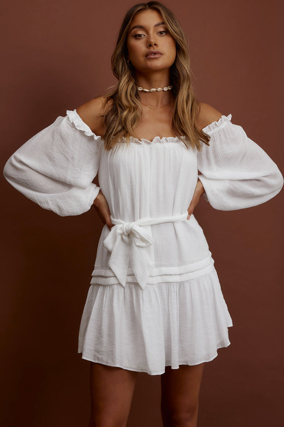 Twirl through your day in our pretty Sycamore dress. Featuring an off-shoulder style and chic, pintuck pleat trim. It's perfect for your 9-5 or weekends at your favorite farmers' market. Team it with wedges and a straw hat for a super cute look we are loving.