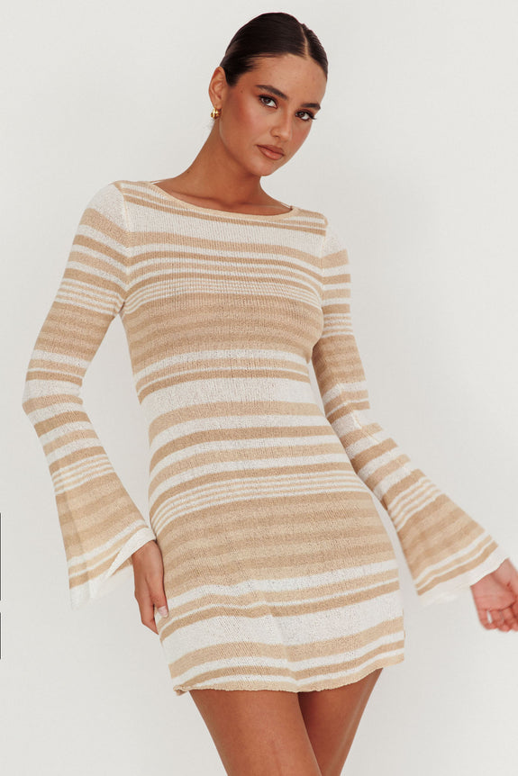 Sylvan Long Sleeve Knit Mini Dress Tan Multi