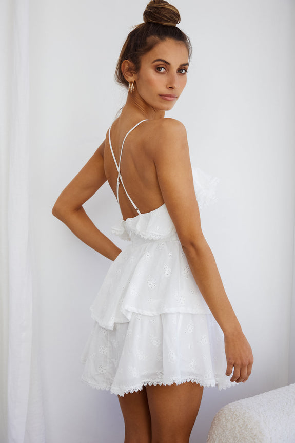 Hey there, cute! You are turning heads in our adorable Tameka dress. We are in love with its eyelet embroidery fabric and layered skirt. Perfect for a day date with bae strolling the farmers markets. Team it with white sneakers for a cute casual look.
