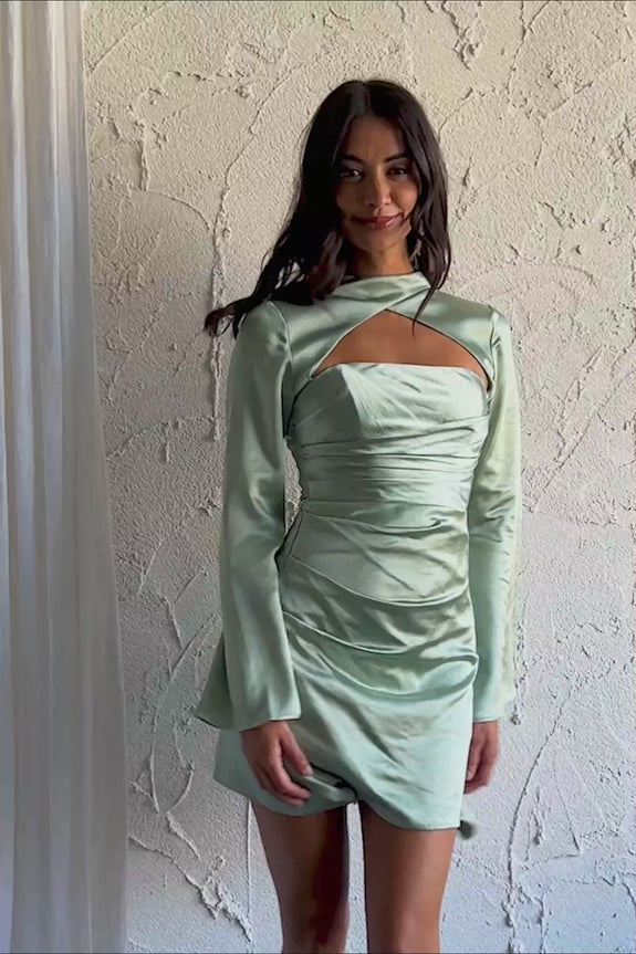 Make an entrance in our gorgeous Tamia mini dress. We are in love with its flared sleeves and cut-out detail in the chest. Perfect for a wedding or birthday celebration. Team it with nude heels and a clutch for a look that will turn heads.