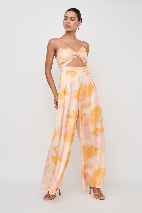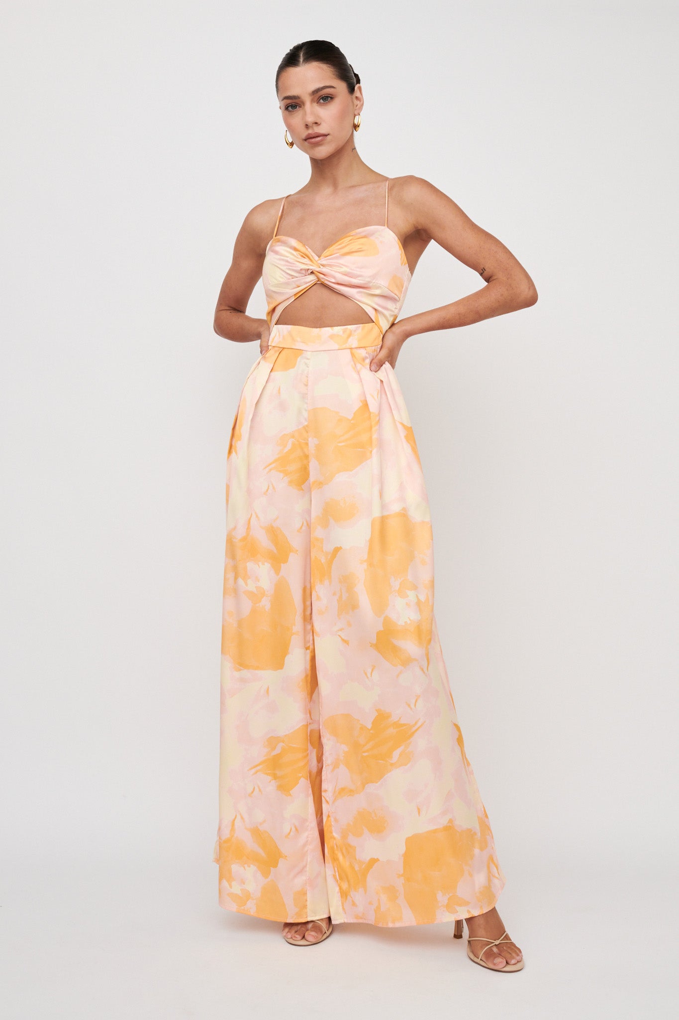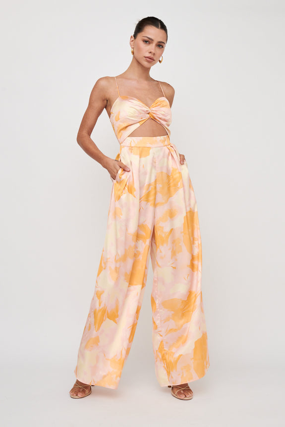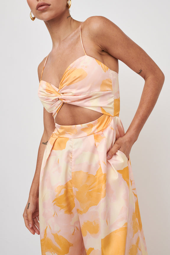 Tammi Cut-Out Waist Jumpsuit Abstract Yellow