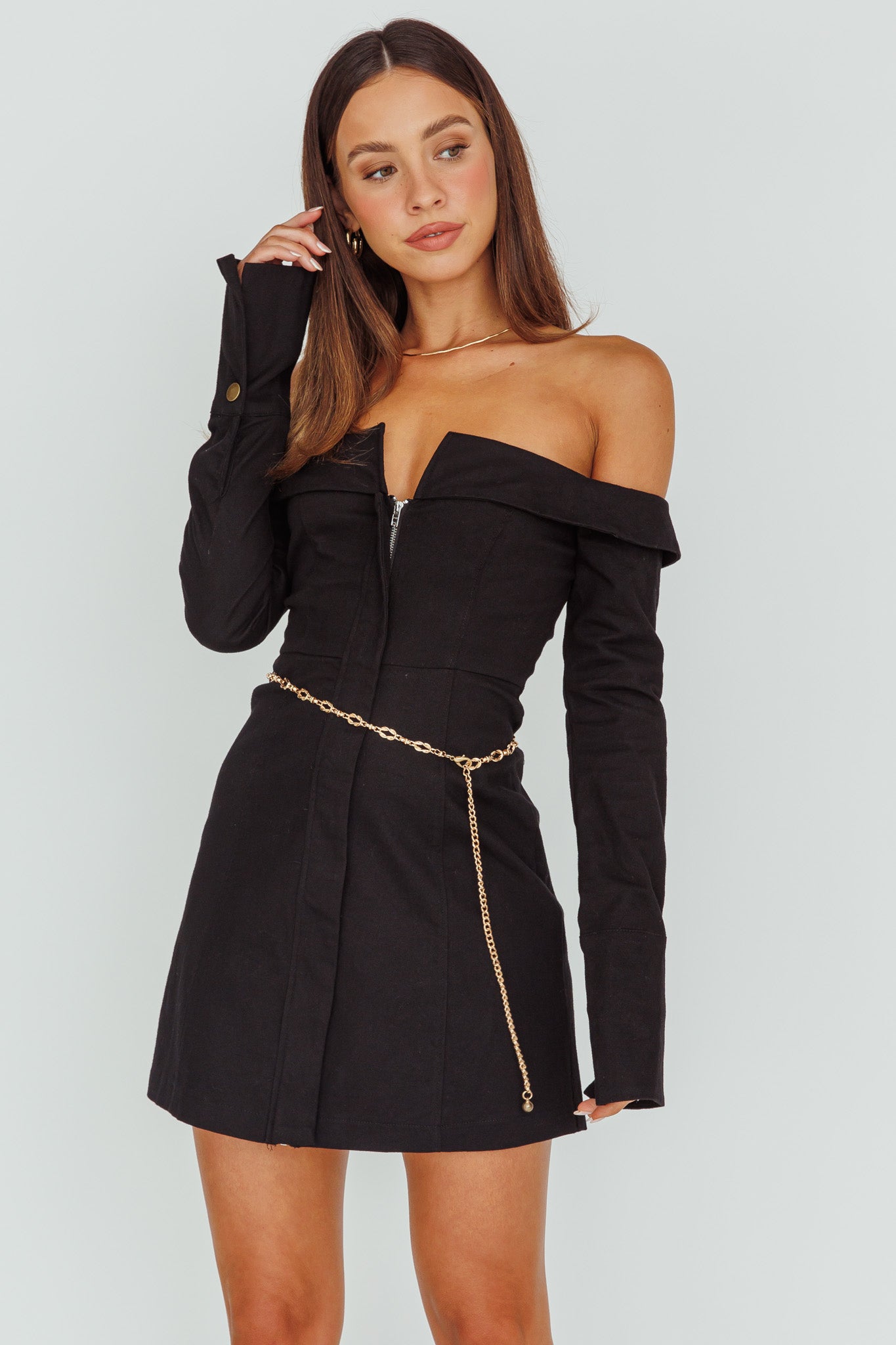 You'll go straight to the best-dressed list in our super chic Tamra mini dress. We are obsessed with its foldover neckline and zipper detail in the front. Perfect for a night out with your girls teamed with knee-high boots and a saddle bag.