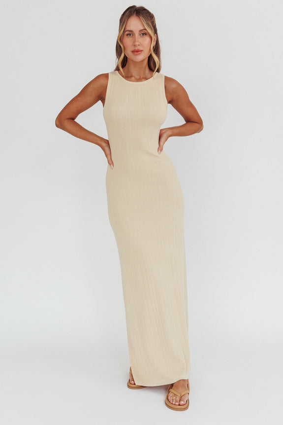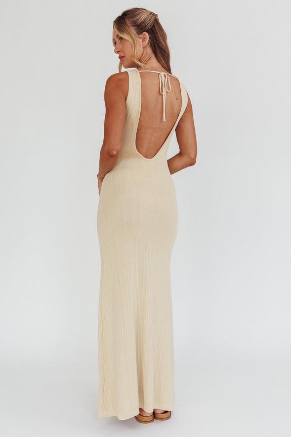 Turn heads in our super chic Tarli maxi dress. It features a sexy, open back and stretchy, ribbed knit fabric. Wear it to Sunday brunch with your girlies teamed with mules and a hobo bag for an effortlessly stylish look.