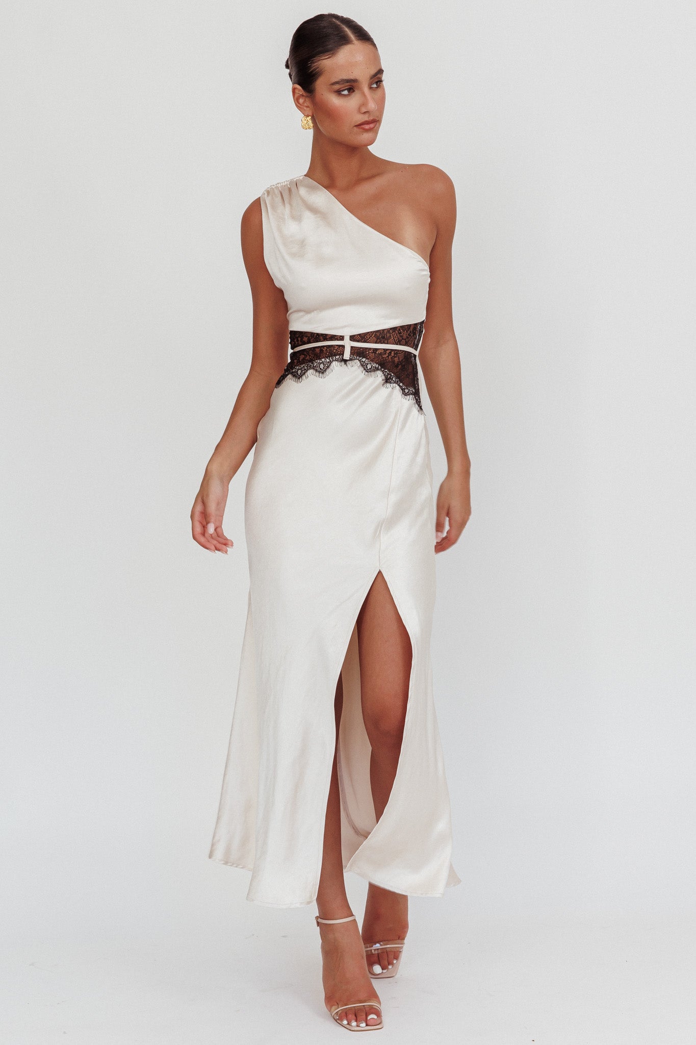 Tarly Lace Waist One-Shoulder Maxi Dress Champagne