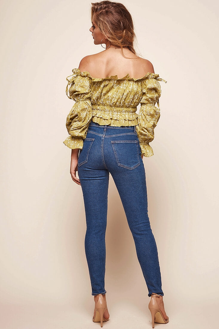 One word. Heaven. Simply put, it's Taryn up our heart. This dreamy Bardot crop-top is just too cute with it's romantic ruffles, elasticated puff sleeves and pretty floral embroidery. Perfect for a day at the mall or a casual night out sipping margaritas with your best gals. Pair it with some white, high waisted bell bottom jeans, winged eyeliner and peach lip. Heaven!