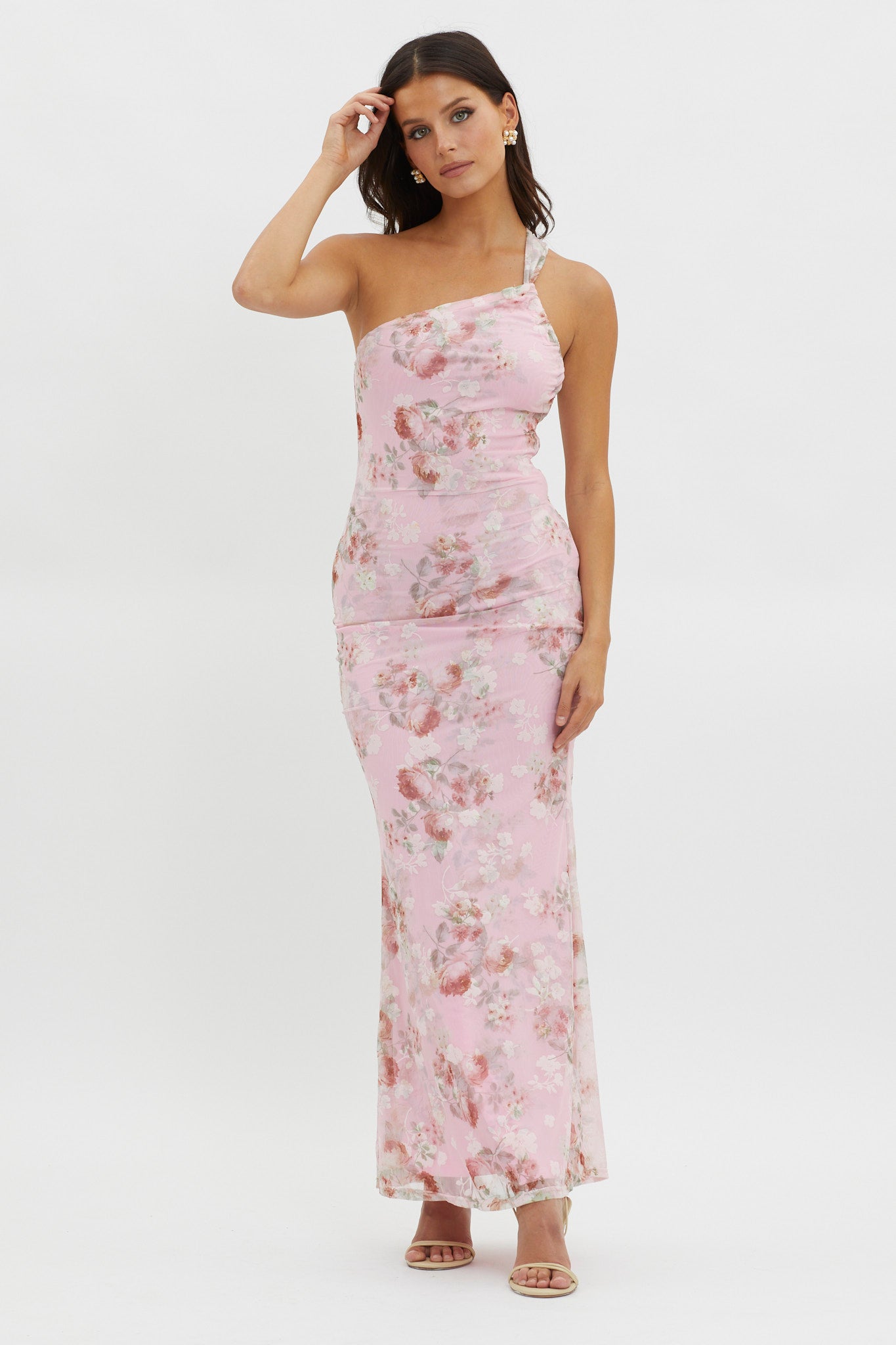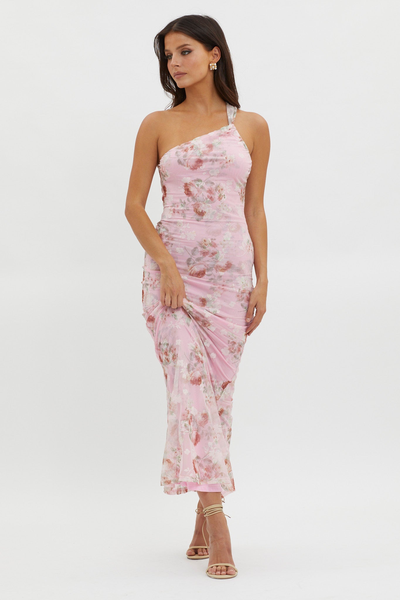Tatum One-Shoulder Mesh Maxi Dress Pink