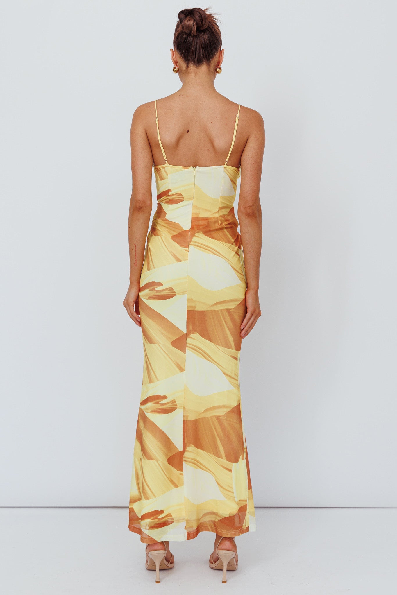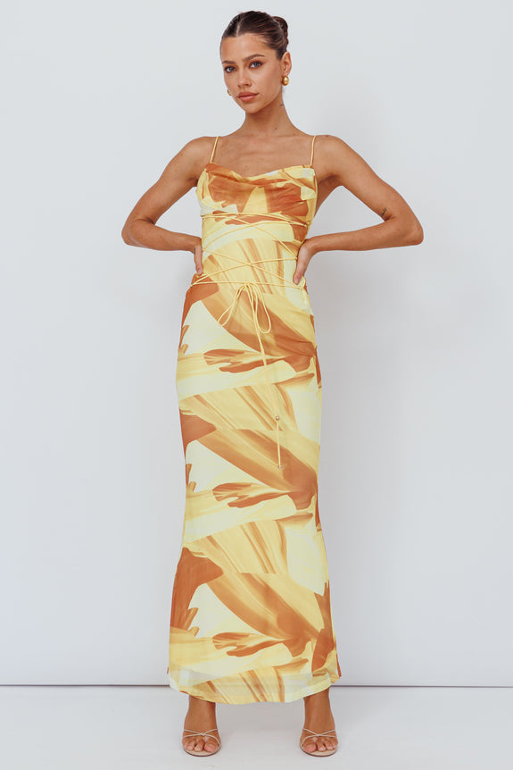 Teava Laced Waist Maxi Dress Abstract Yellow