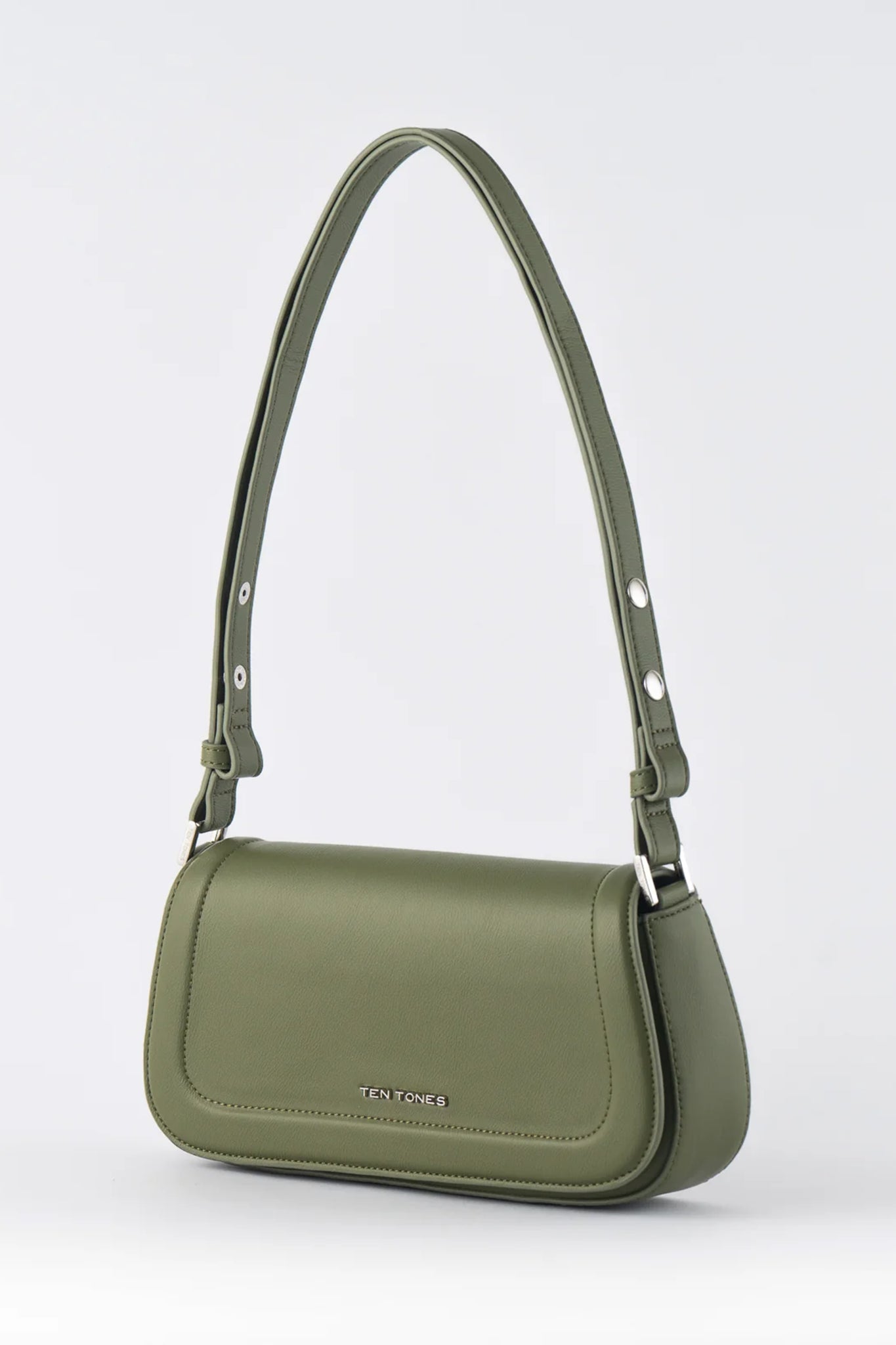 Take your look to the next level with the Bruno baguette bag by TEN TONES. Featuring a vegan leather and adjustable strap. It's perfect for weekend lunch dates or dressed up with a mini dress and boots for a night out with your girls.
