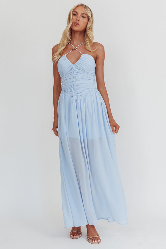 The Dreamers Ruched Basque Waist Maxi Dress Blue