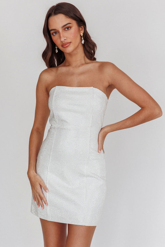 This Feeling Strapless Diamante Mini Dress White