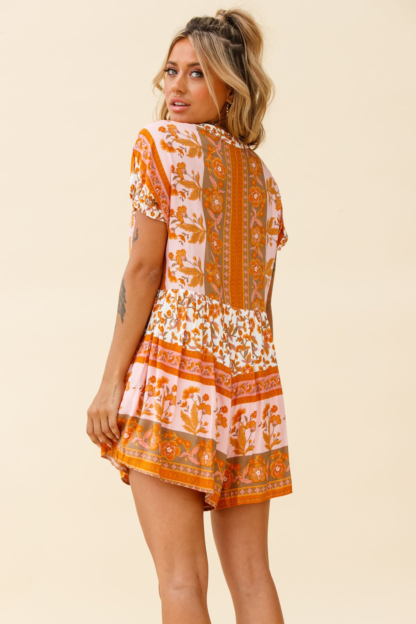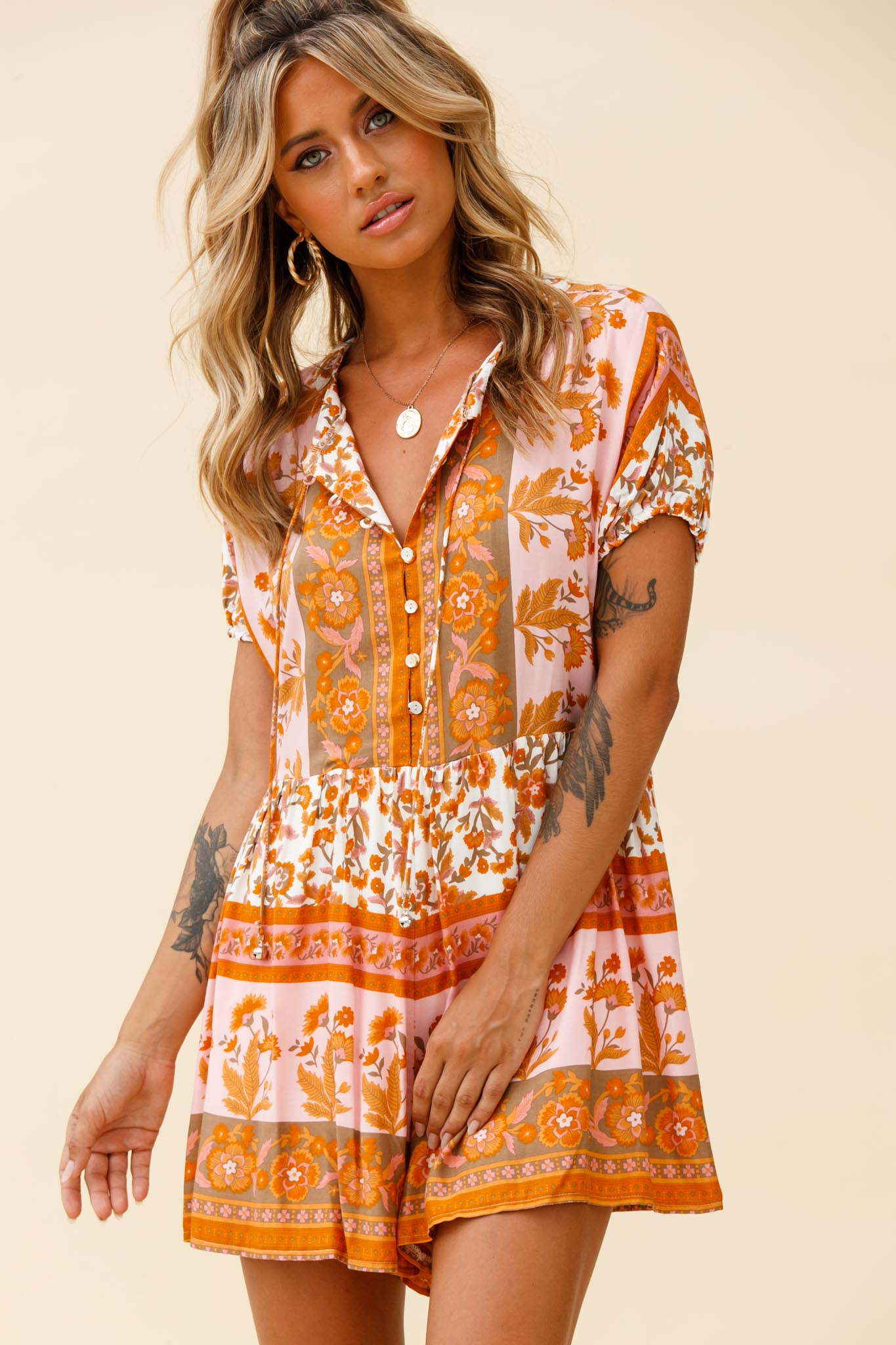 Time flies when you're having fun in our adorable Time Flies romper. We are loving it's casual-chic button-up T-Shirt style and collar. Perfect for a fun day out with your girls or for running errands in style. Team it with crisp white tennis shoes and a basket bag for a playful look.