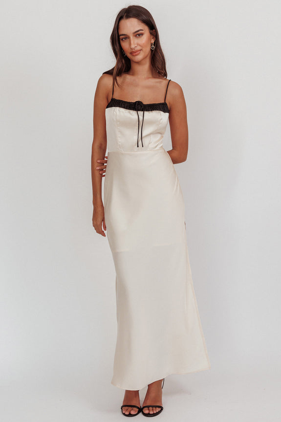 Tomorrow's Love Gathered Bow Neckline Maxi Dress Oyster