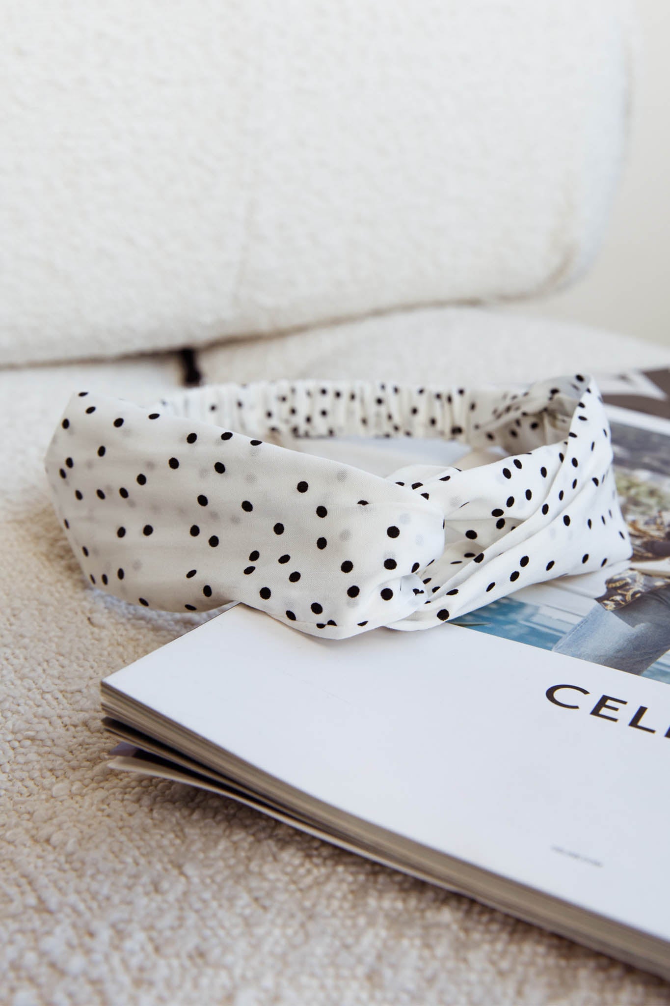 - Spotted, white headband